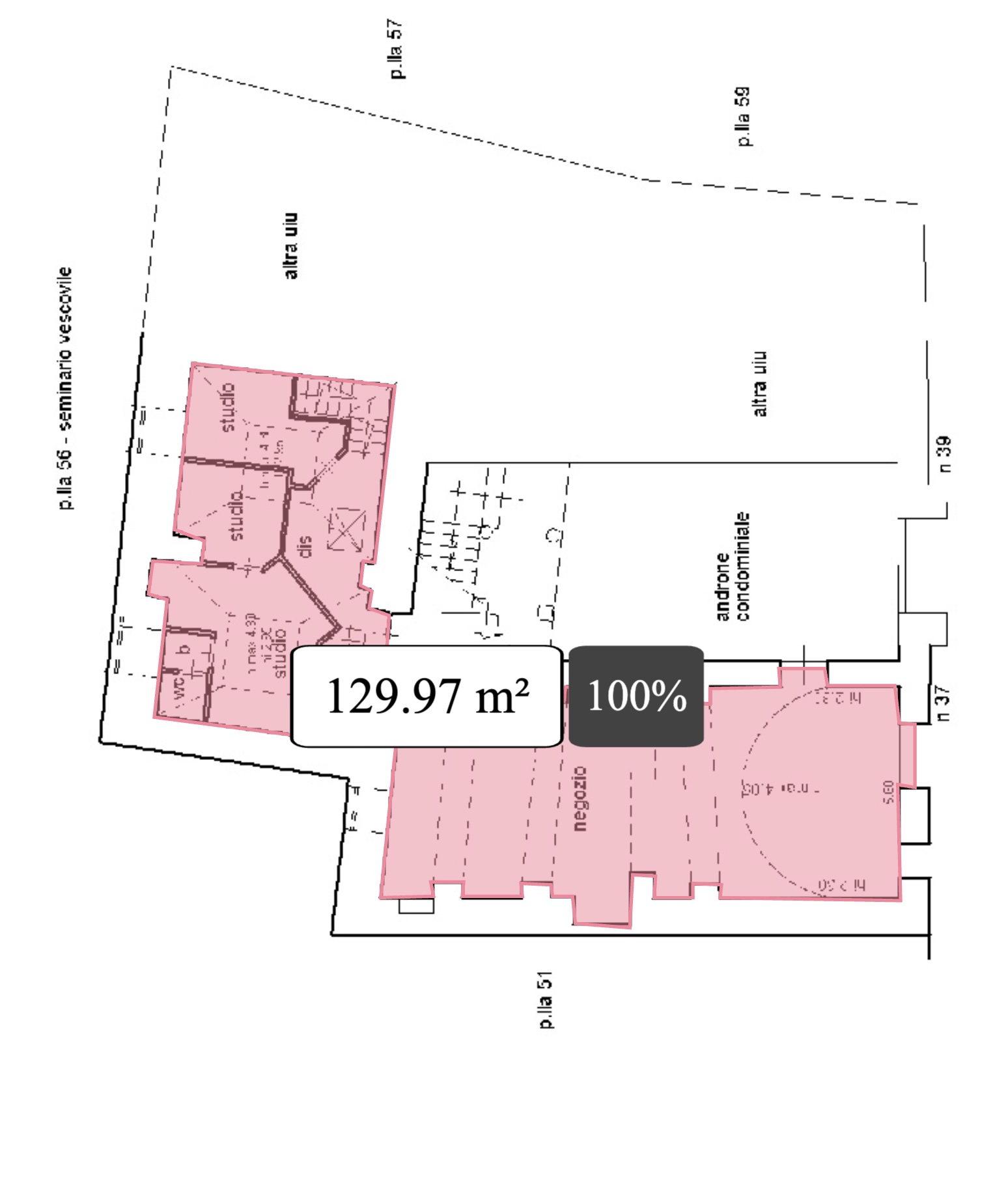Locale commerciale 193 mq catastali su due livelli.