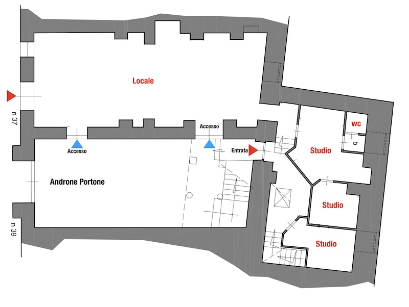 • Ingresso diretto da strada + altri 3 accessi dal caratteristico androne adiacente