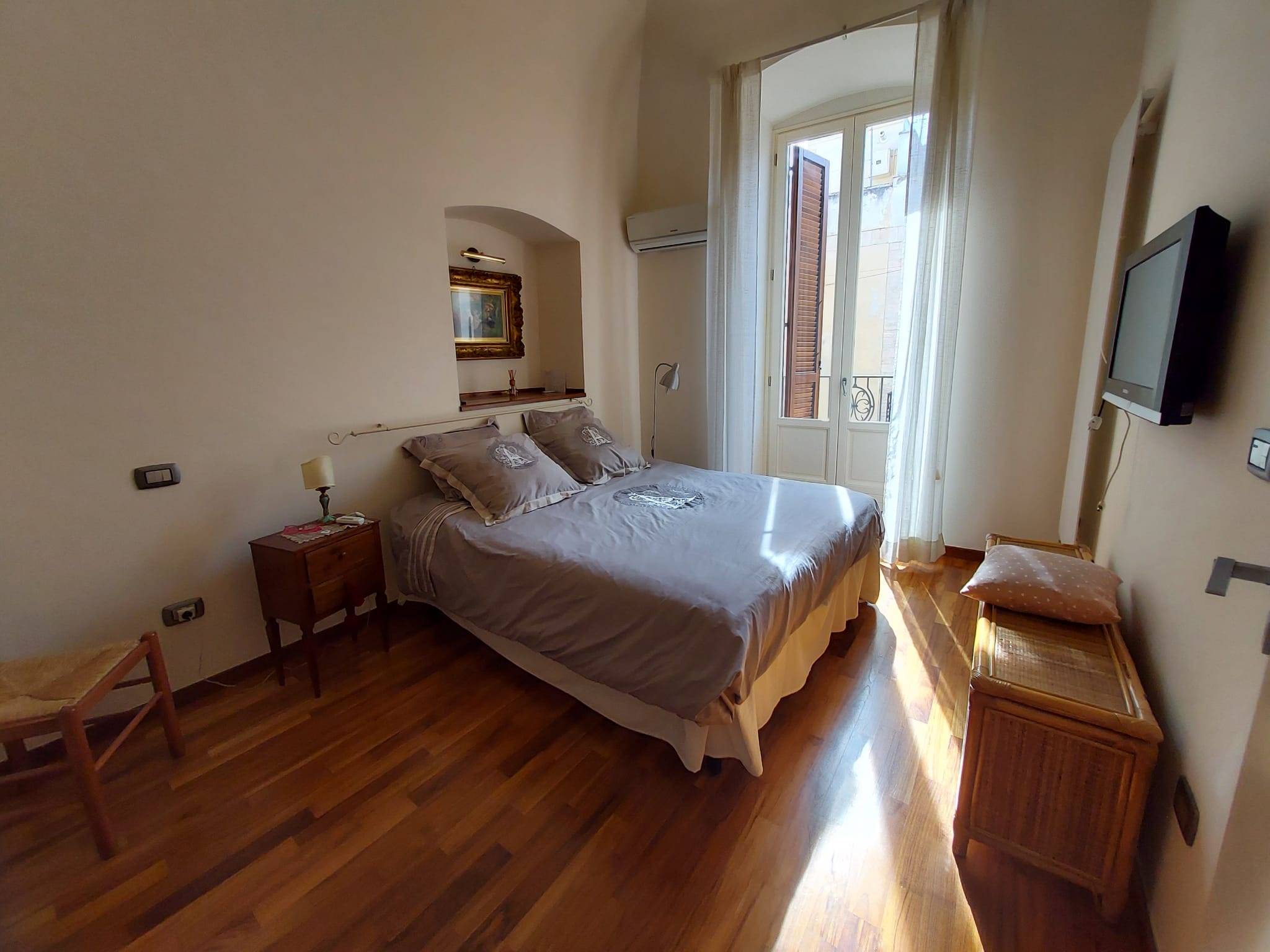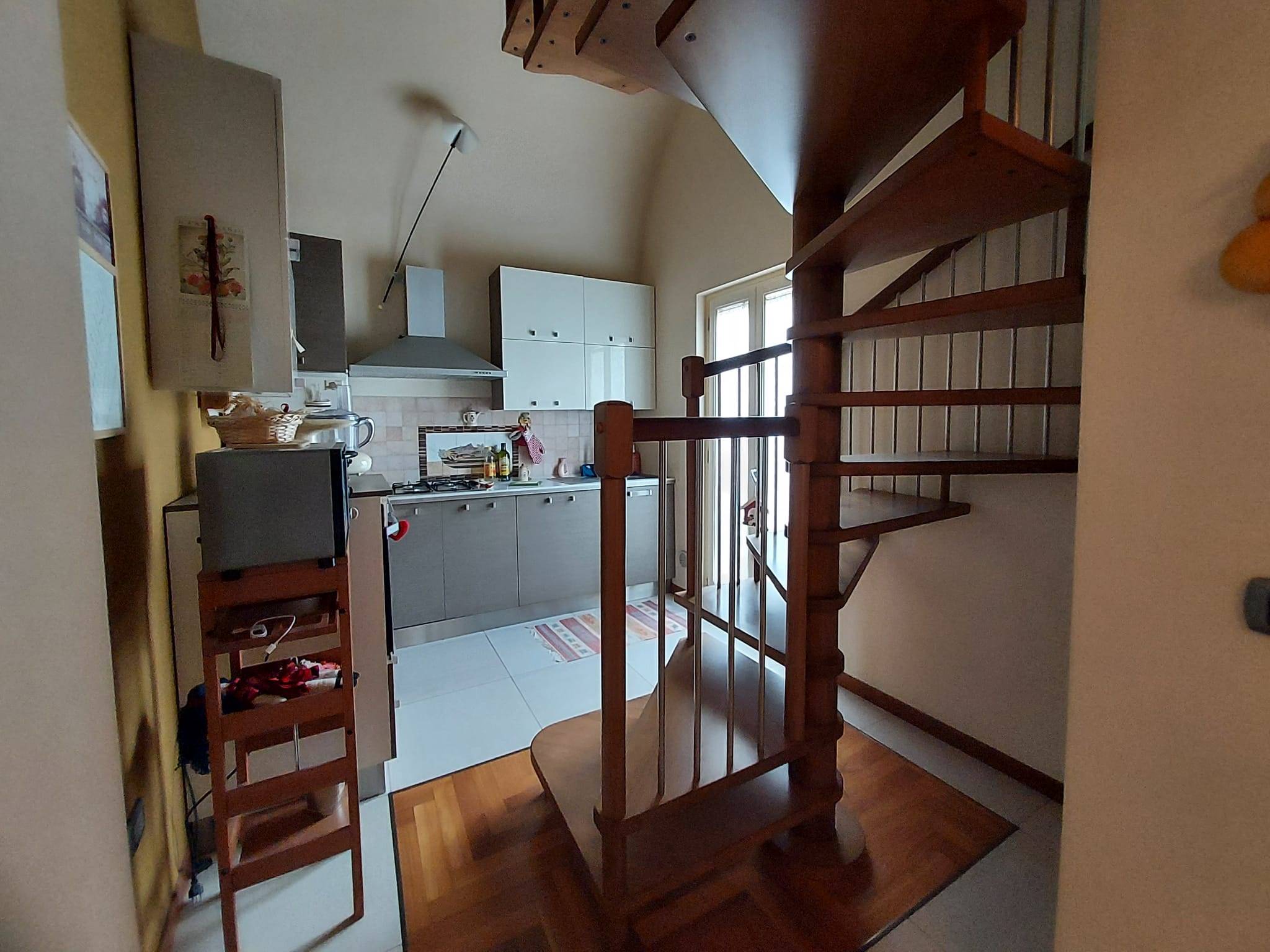 In pieno centro cittadino, entrando in questo appartamento, sarete piacevolmente sorpresi dai suoi ambienti sobri e raffinati. Una zona living ampia e ben disimpegnata dalla zona notte composta da due vani e due bagni. Internamente, poi, in corrispondenza della cucina, si accede, attraverso una solida scala in legno, alla mansarda, anch'essa ben tenuta e munita di tutti i confort, rappresentando, quindi, una comoda dependance dell'immobile. A completare l'offerta immobiliare c'è un locale deposito, prezioso ripostiglio, nel vano scale a piano terra.