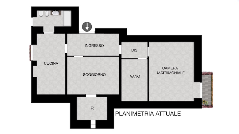 Possibilità di personalizzazione: Con una piccola modifica potrai trasformare la zona giorno in un moderno Open Space con cucina e soggiorno a vista!