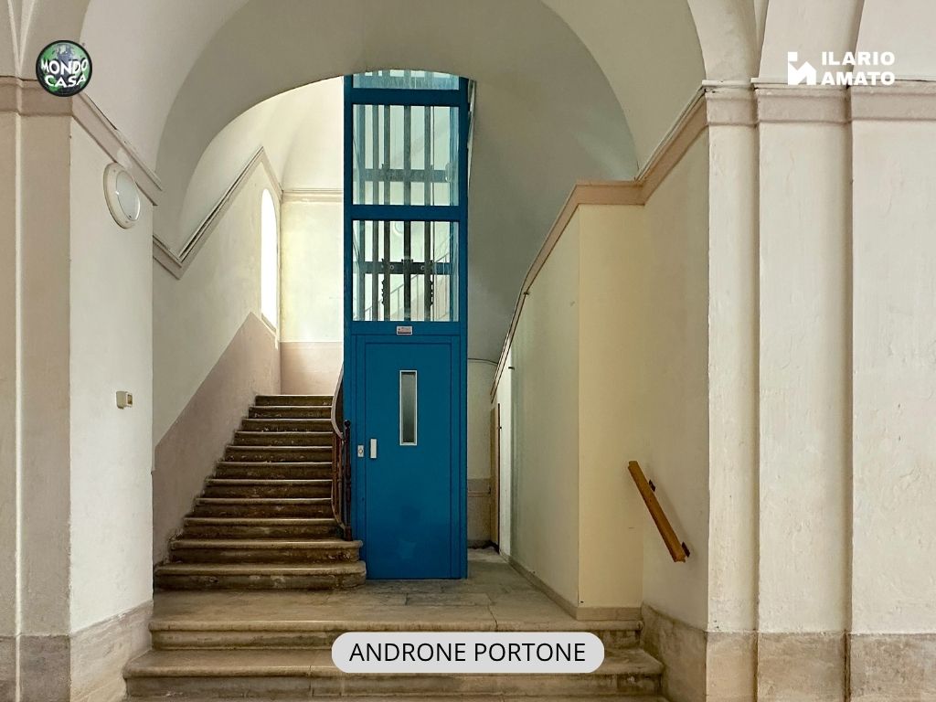 L’abitazione si trova al primo piano di uno stabile elegante dotato di ascensore, un dettaglio raro e prezioso nei palazzi antichi del centro.
