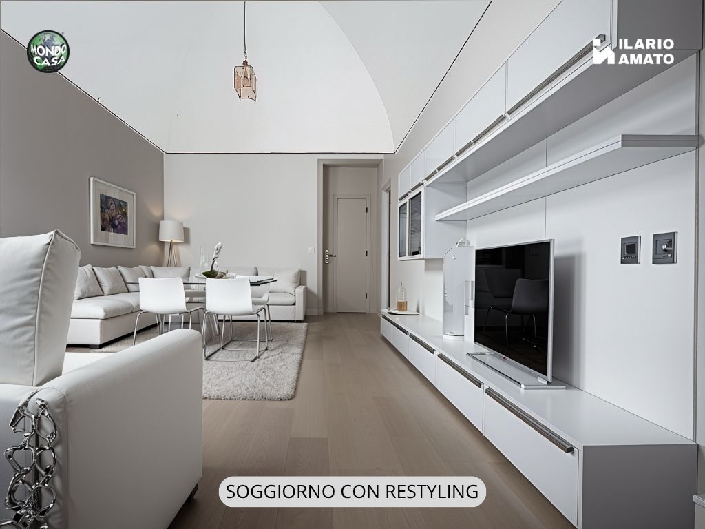 Nelle immagini puoi vedere com’è oggi l’appartamento e come potrebbe diventare, grazie a un nuovo arredo o a un leggero restyling.