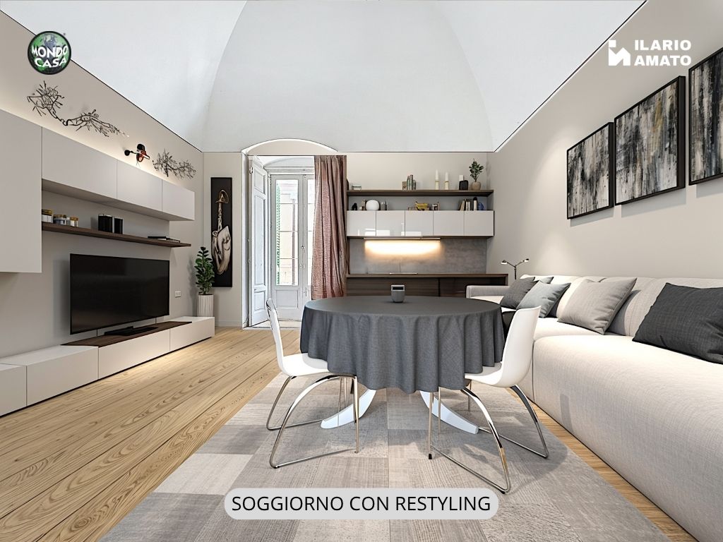 Qui, tra negozi, servizi e attività di ogni tipo, si trova un appartamento che unisce il fascino degli edifici d’epoca alla comodità di spazi ampi e funzionali.