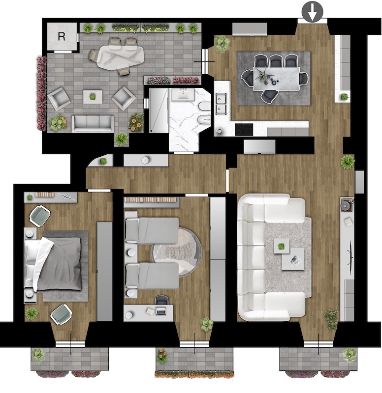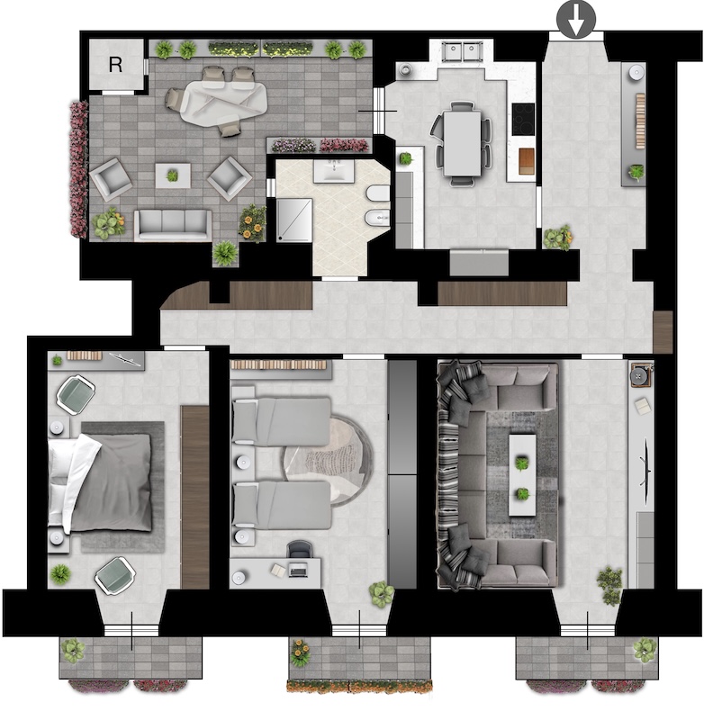 Con 100 mq interni e ben 26 mq di spazi esterni, questa abitazione offre tutto ciò che serve per vivere il centro città con comodità, luce e fascino.
