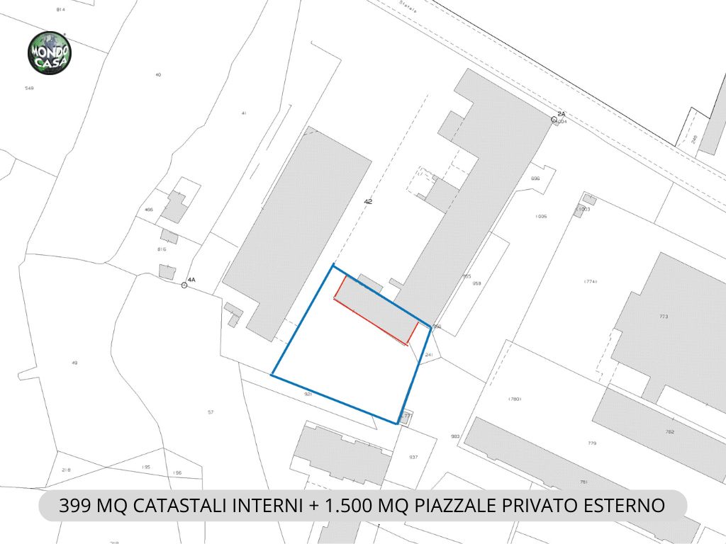 • Area esterna ideale per parcheggi, deposito merci, esposizione o ampliamenti futuri.