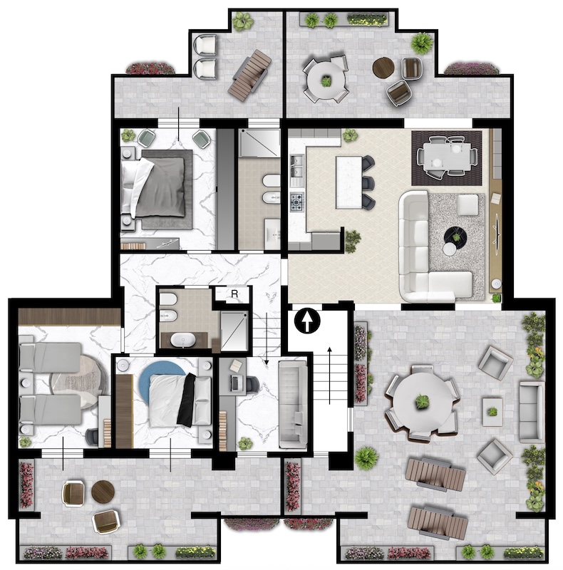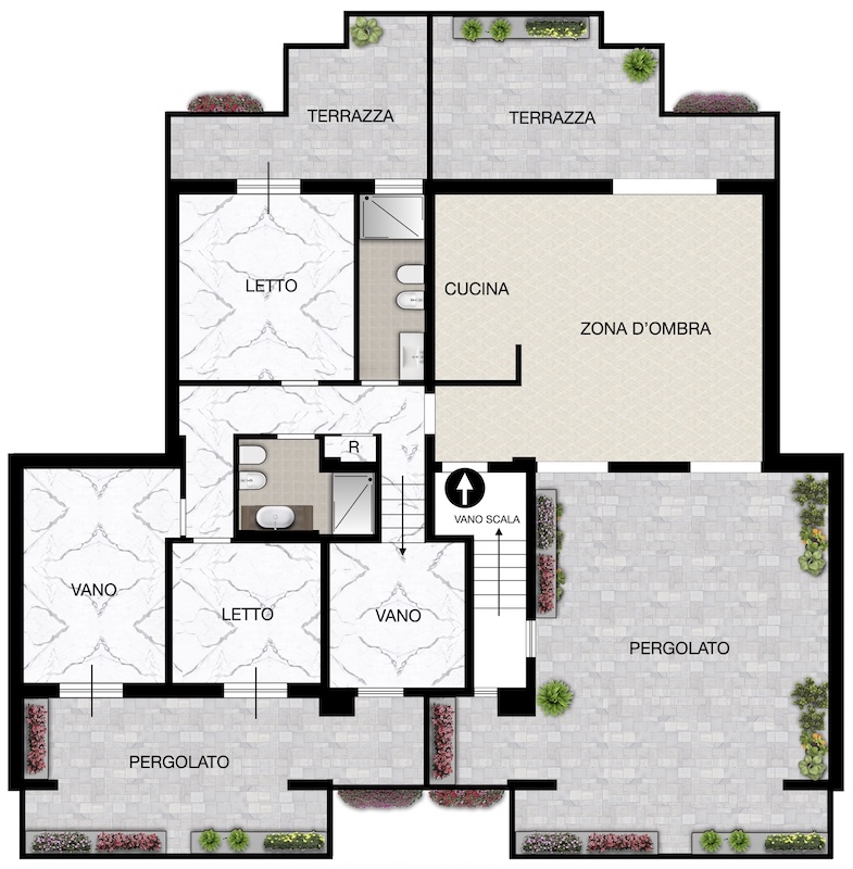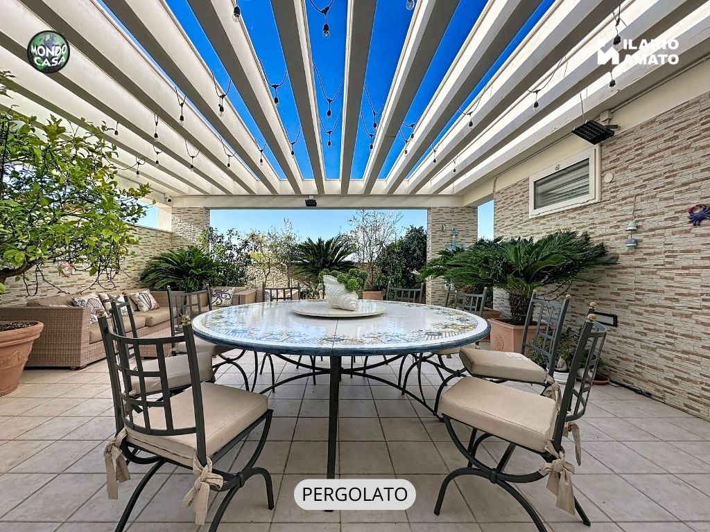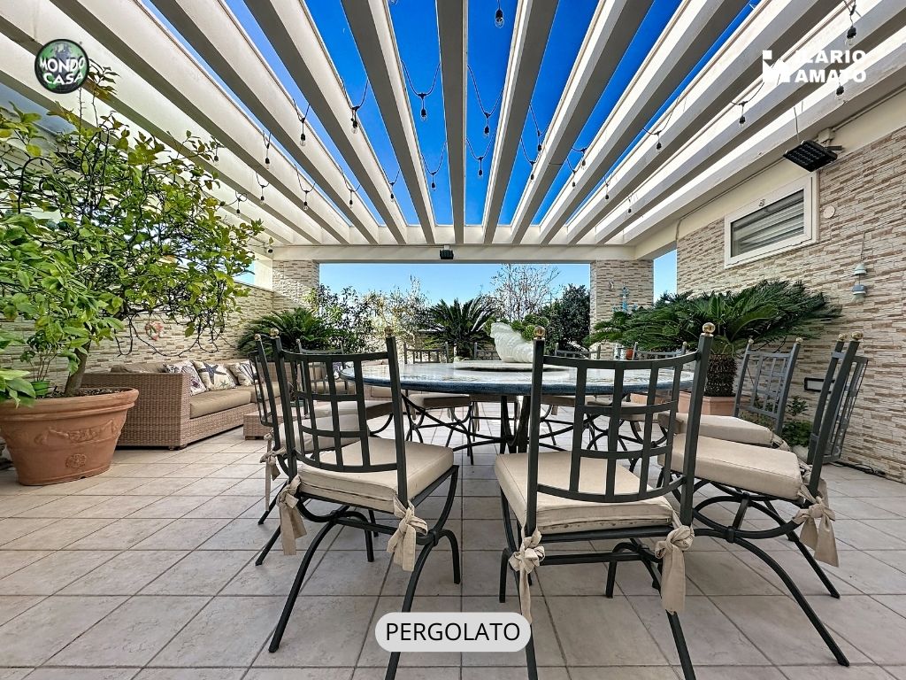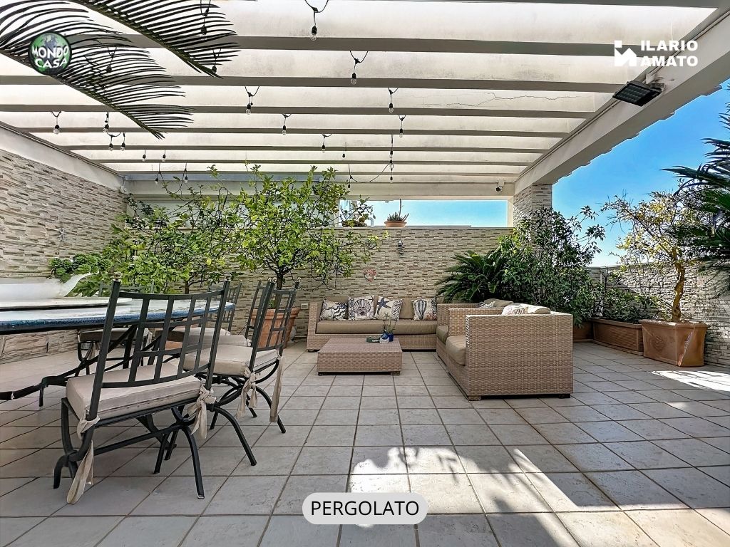 Il grande valore aggiunto di questo attico è dato dall’ampia superficie esterna di 120 mq costituita da terrazzi, e un pergolato così spazioso, da diventare un autentico salotto a cielo aperto.