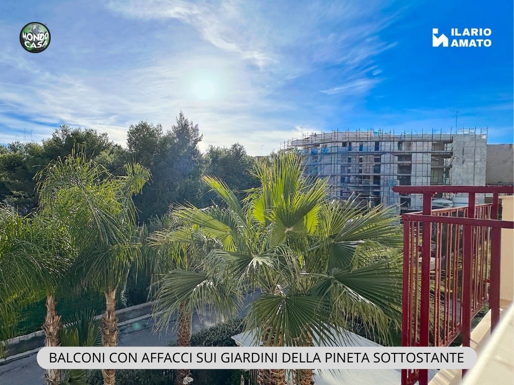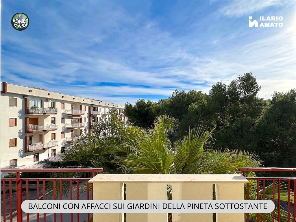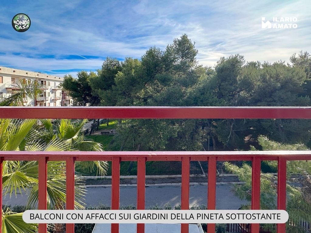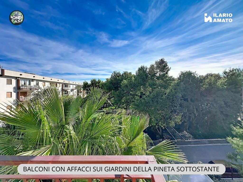 All’esterno, 26 mq di balconi completano la proprietà, mentre gli affacci regalano una gradevole vista mare laterale e un’esposizione diretta sui giardini della pineta sottostante.