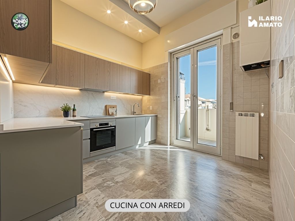 L’appartamento si trova in Piazza I Maggio, al 2° piano di un moderno fabbricato completamente ristrutturato nel 2024, dotato di ascensore.
