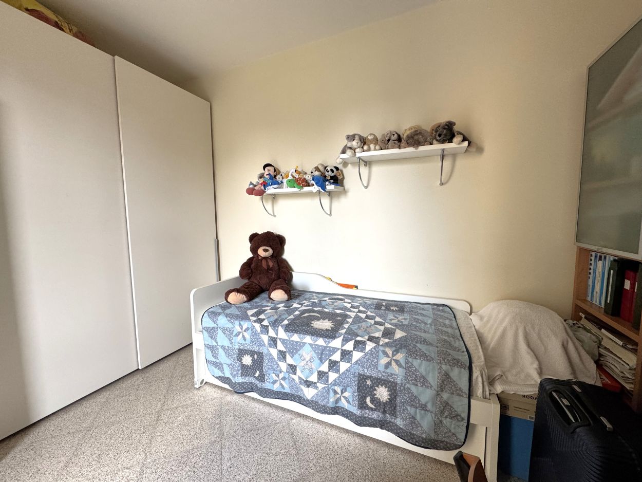 Il soggiorno, spazioso e molto luminoso, rappresenta il cuore dell’abitazione, perfetto per il relax e l’accoglienza. La zona notte comprende due camere da letto con gradevole affaccio sul verde, pensate per offrire tranquillità e comfort. Completa l’immobile un bagno funzionale e un comodo ripostiglio, utile per l’organizzazione degli spazi.