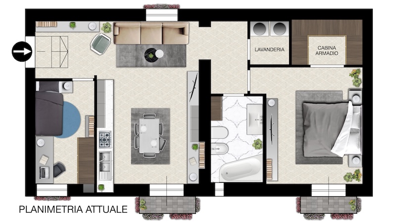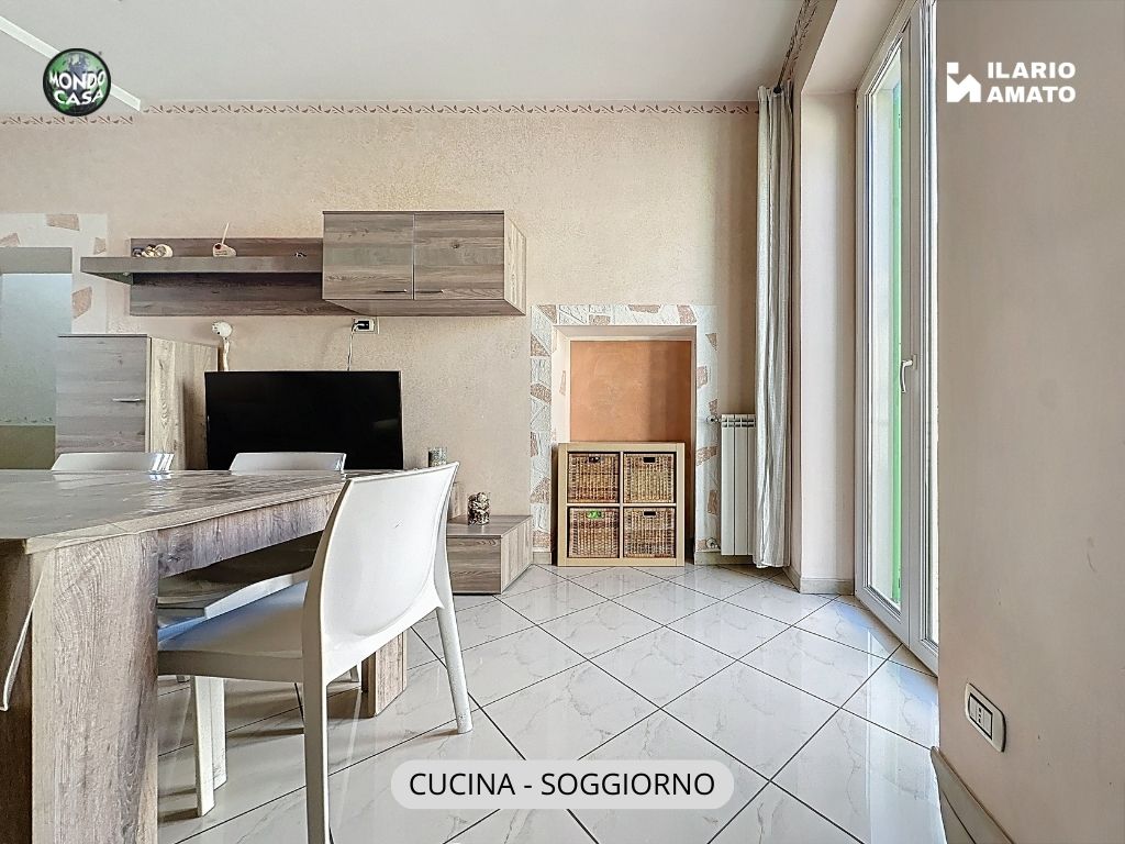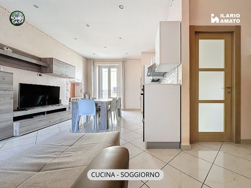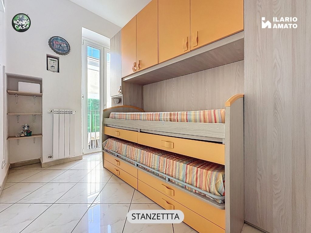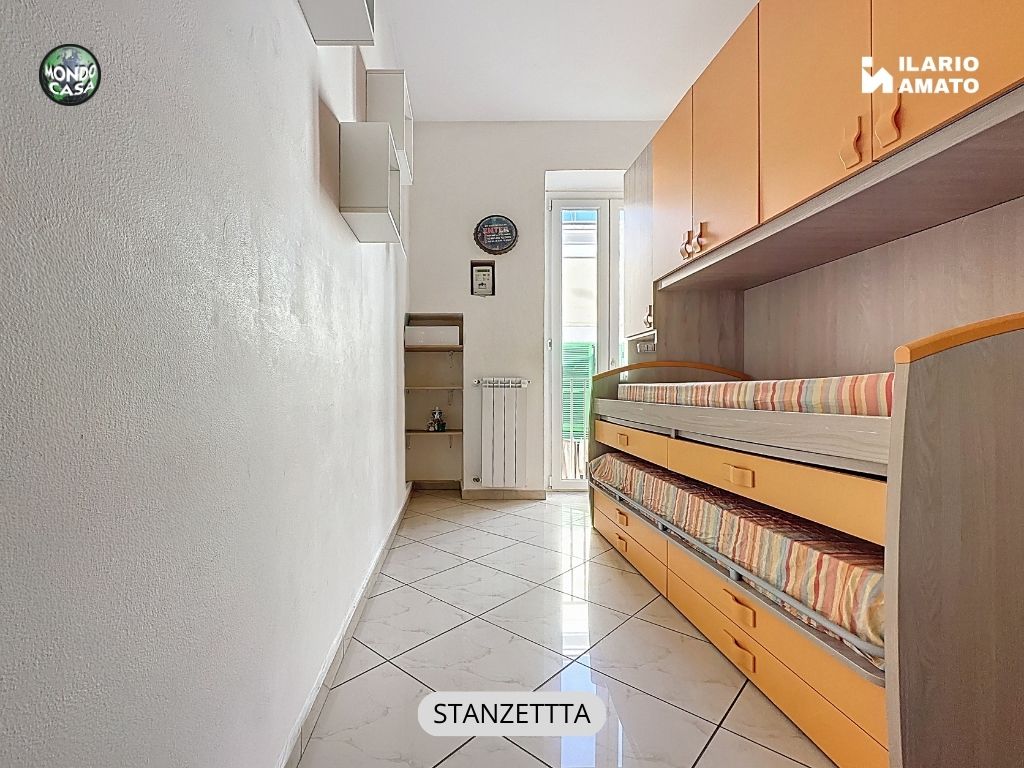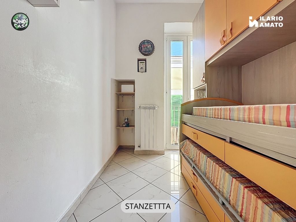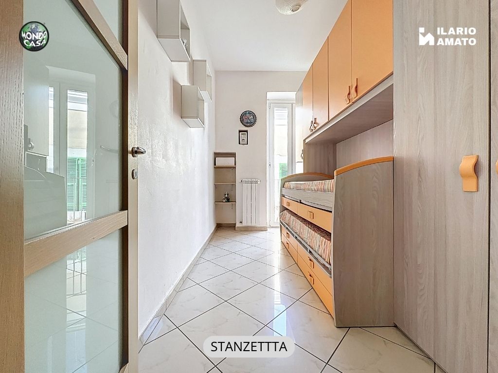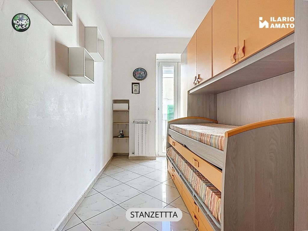 La distribuzione degli spazi è funzionale e ben organizzata: ingresso, cucina-soggiorno, camera per i figli, disimpegno, lavanderia, bagno e camera da letto matrimoniale con cabina armadio. Tutti gli ambienti sono finestrati o dotati di balcone, garantendo una piacevole luminosità naturale.