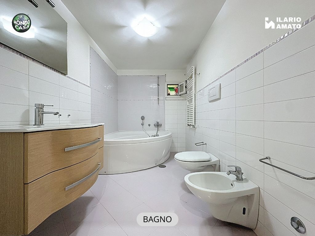 L’appartamento si presenta in ottime condizioni e viene venduto completo di arredamento. Tra le dotazioni troviamo: porta blindata, porte interne in legno scorrevoli a scomparsa, persiane in anticorodal, infissi in PVC con doppio vetro termico, riscaldamento autonomo, controsoffitti con faretti incassati, due climatizzatori caldo/freddo, predisposizione per impianto d’allarme e serbatoio di riserva idrica.