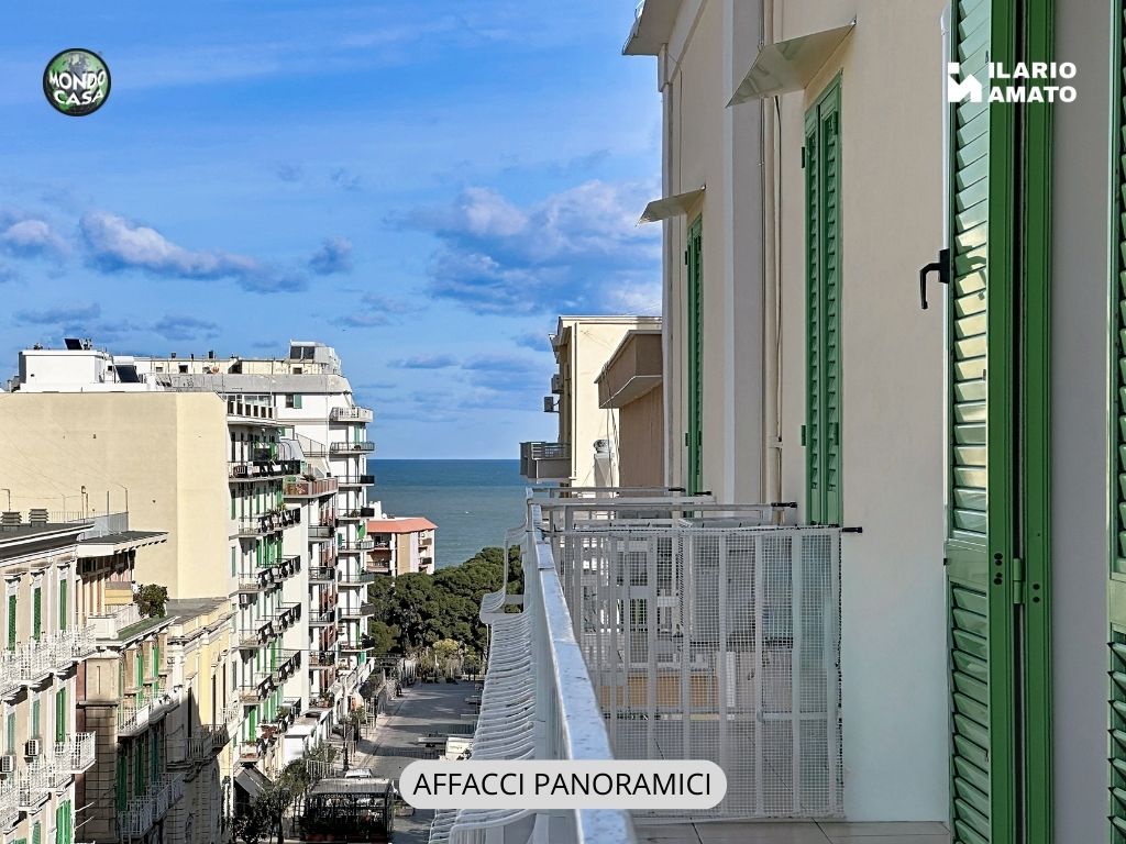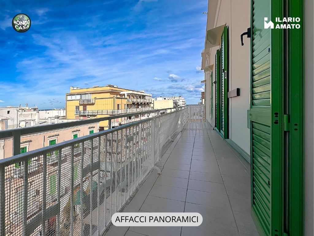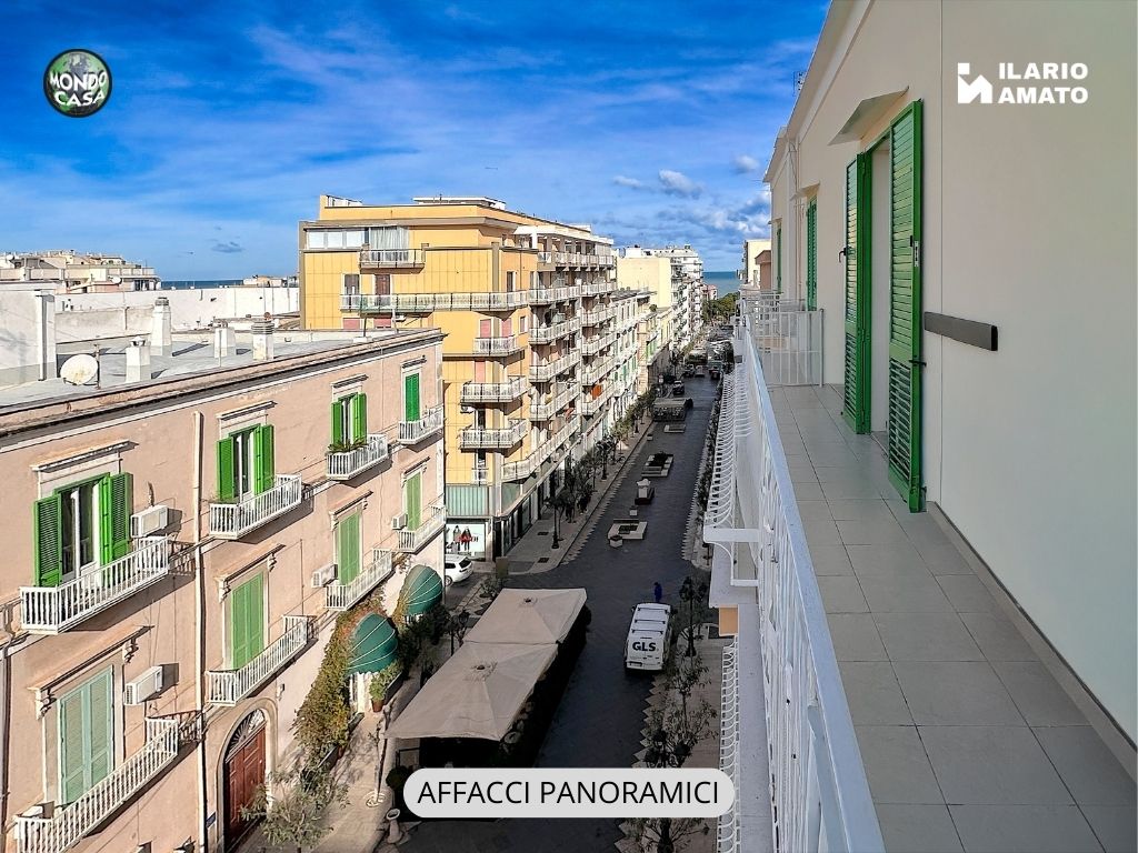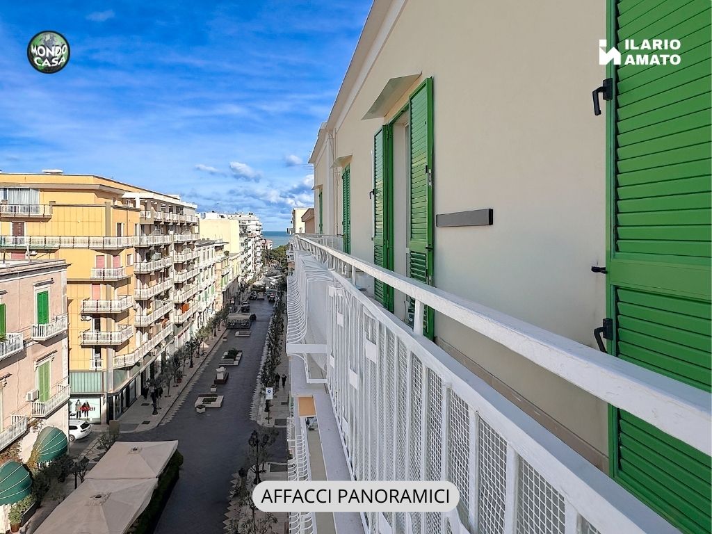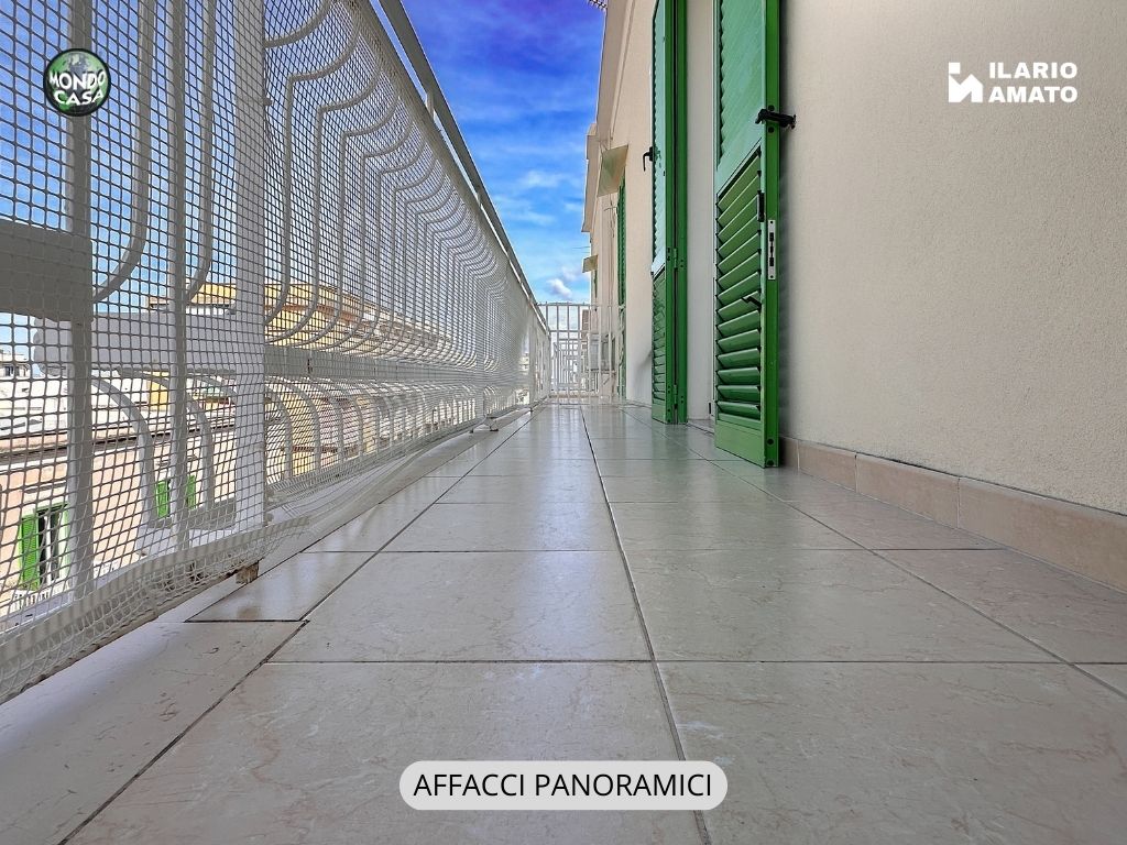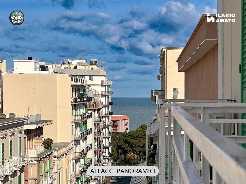 L’appartamento si trova al quarto e ultimo piano e gode di affacci panoramici sulla città, sul corso principale e di una piacevole vista mare laterale. Il pianerottolo, ampio e finestrato, contribuisce a rendere l’arrivo a casa luminoso e arioso.