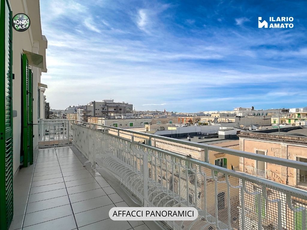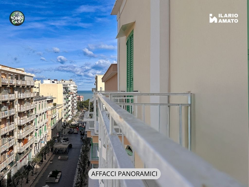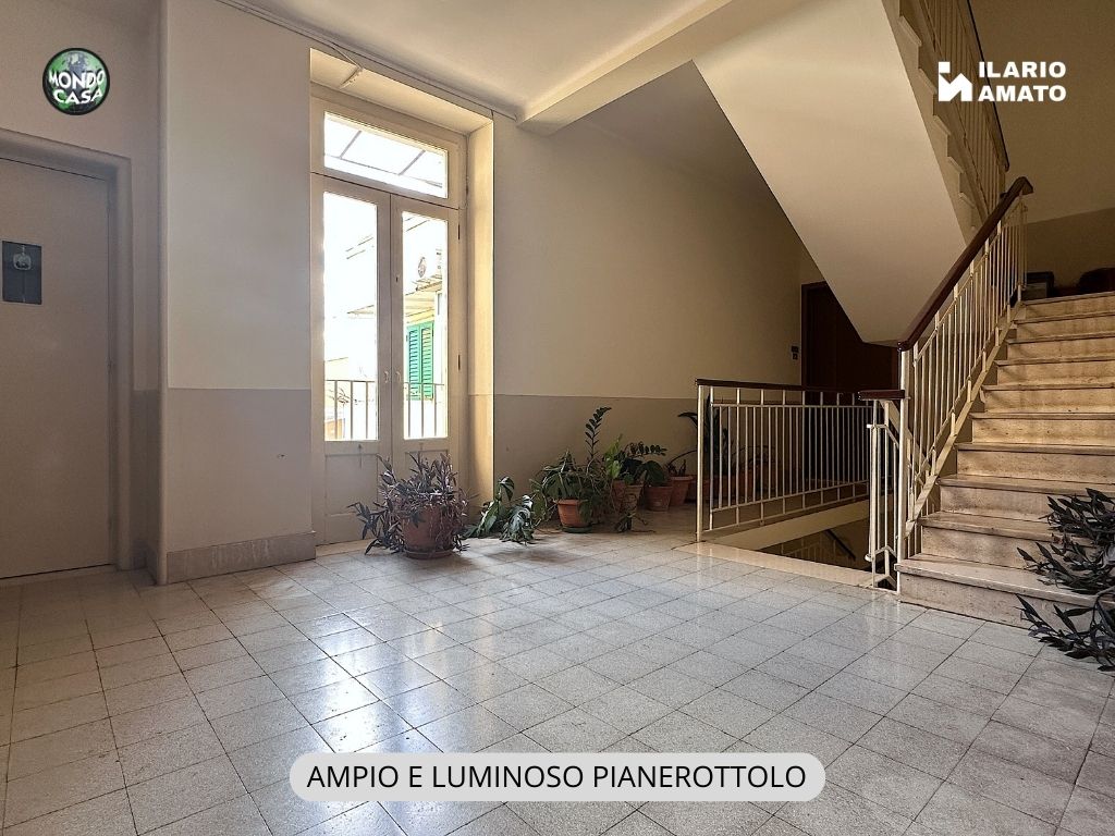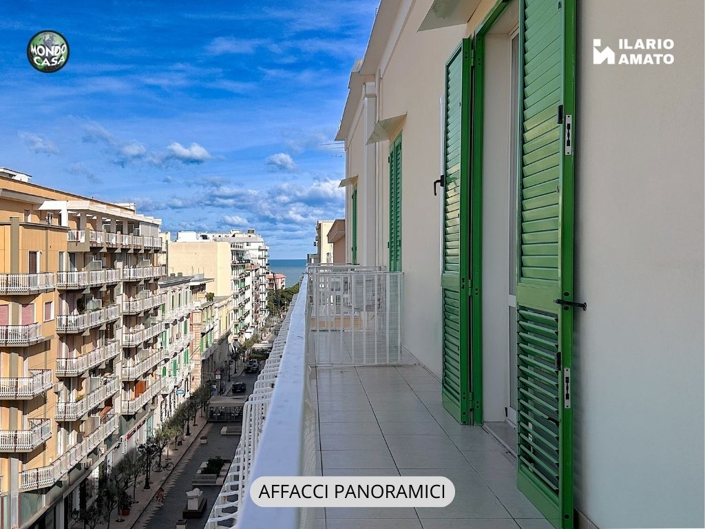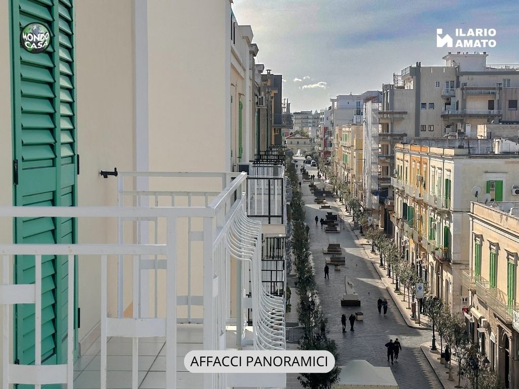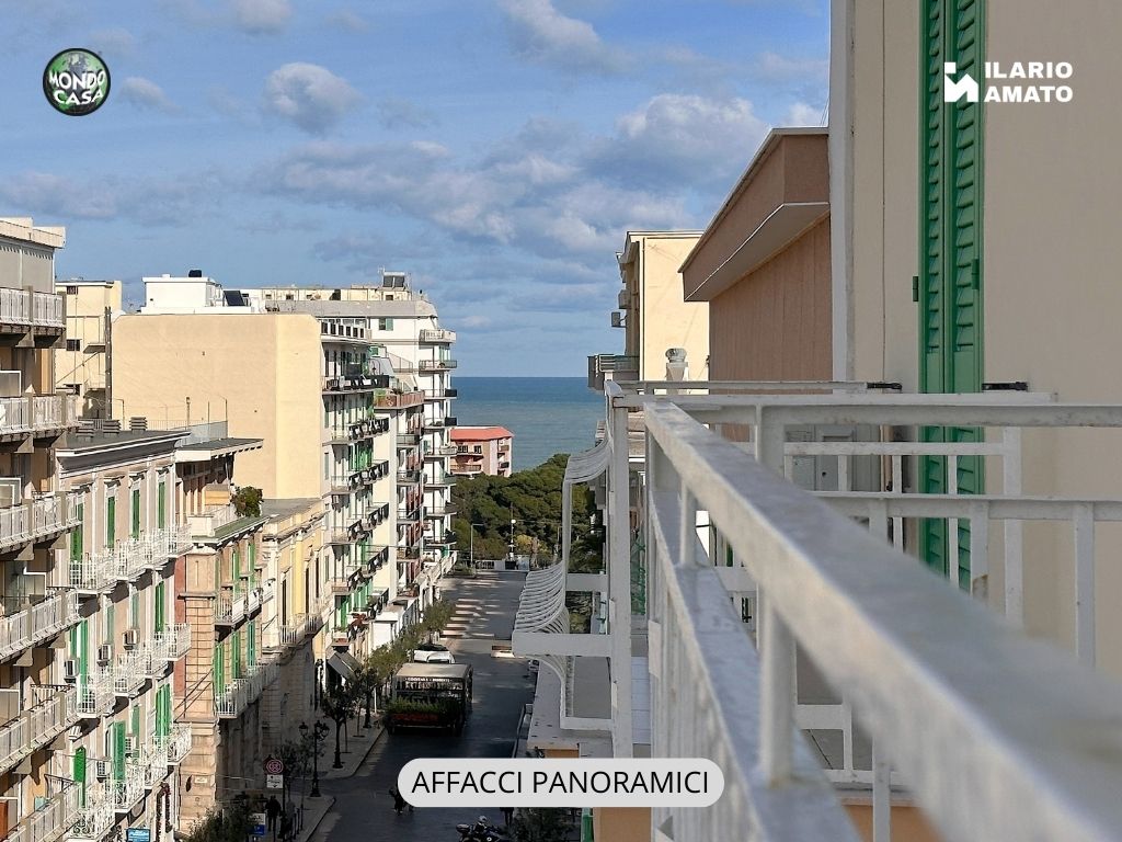 L’appartamento si trova al quarto e ultimo piano e gode di affacci panoramici sulla città, sul corso principale e di una piacevole vista mare laterale. Il pianerottolo, ampio e finestrato, contribuisce a rendere l’arrivo a casa luminoso e arioso.
