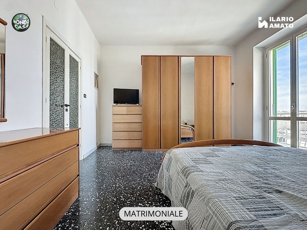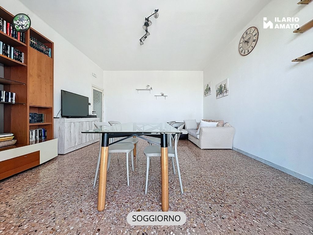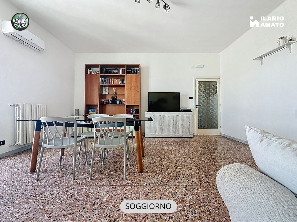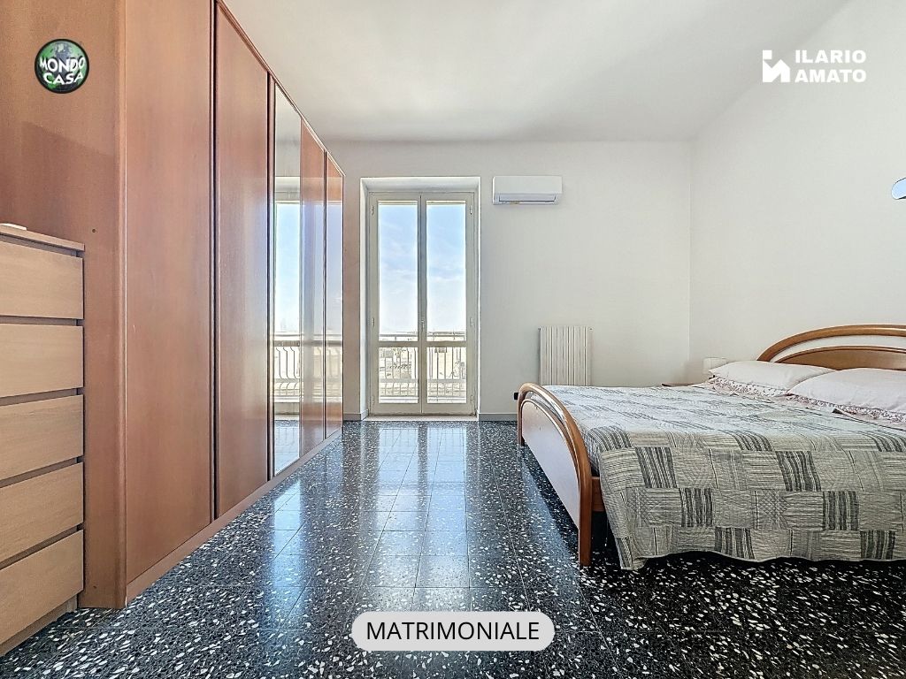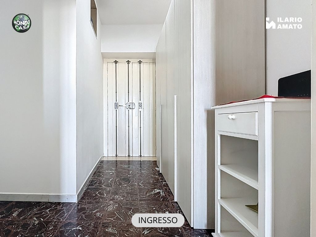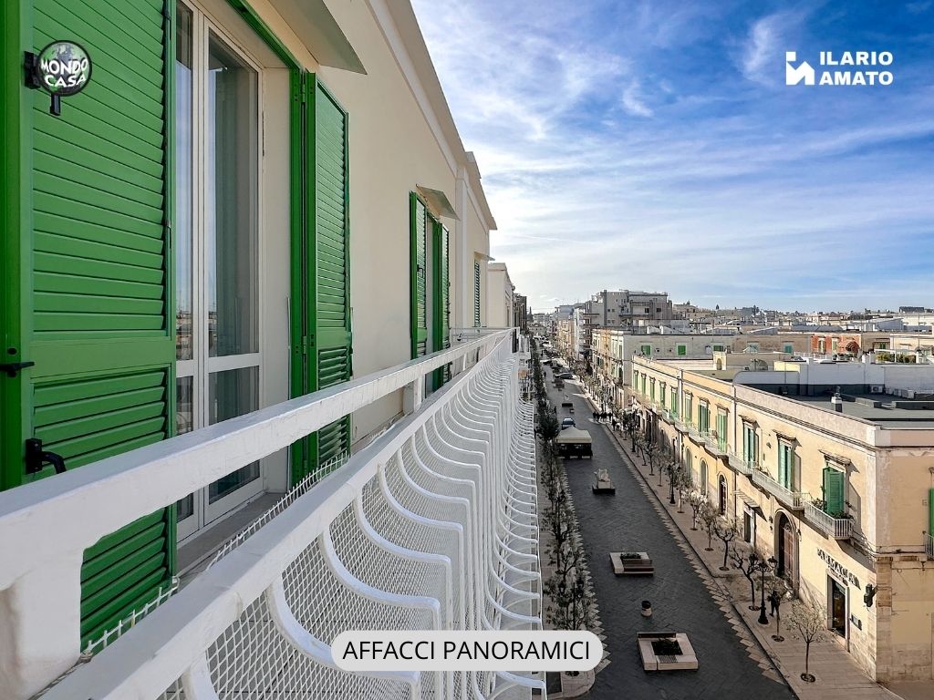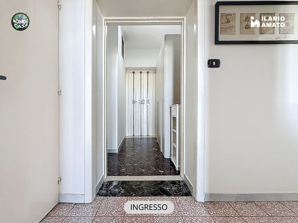 L’appartamento si trova al quarto e ultimo piano e gode di affacci panoramici sulla città, sul corso principale e di una piacevole vista mare laterale. Il pianerottolo, ampio e finestrato, contribuisce a rendere l’arrivo a casa luminoso e arioso.