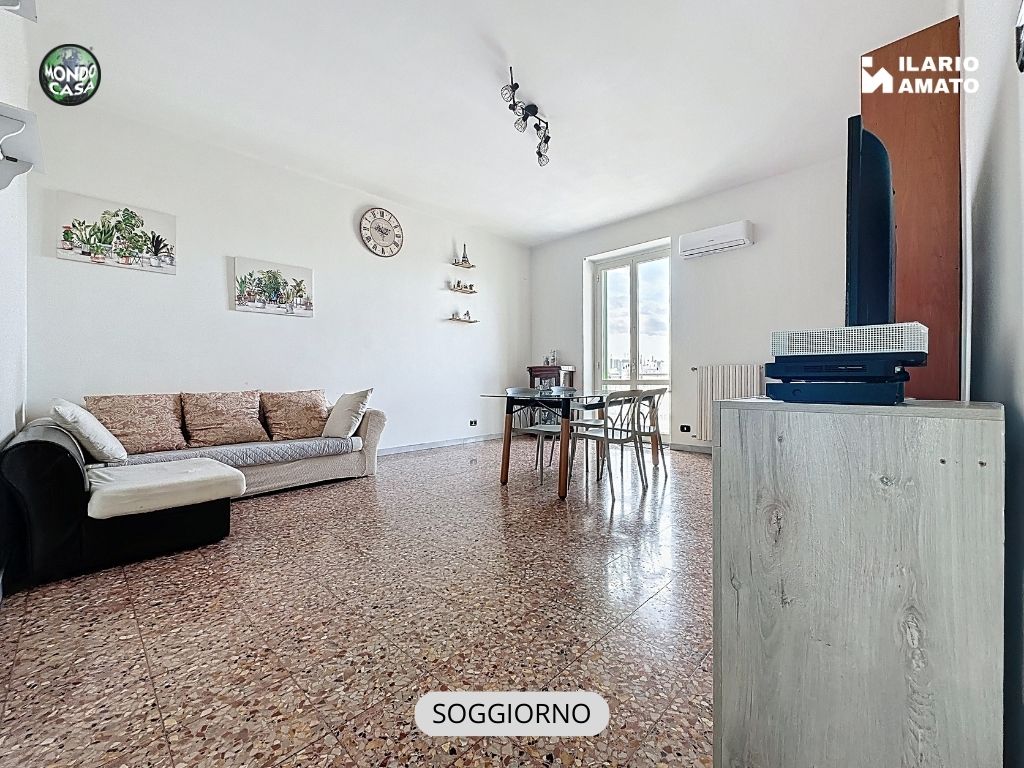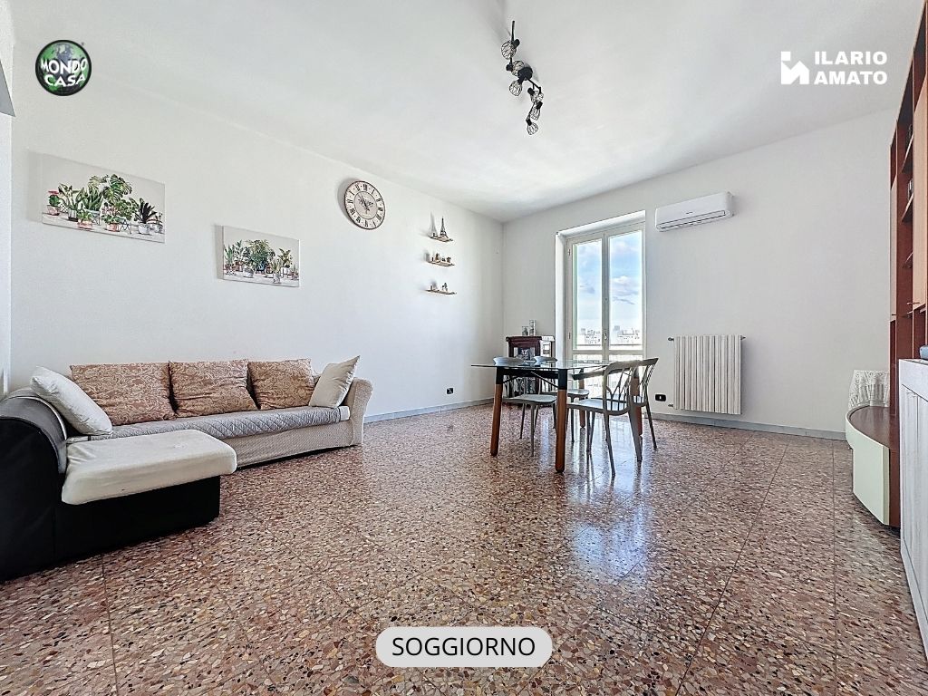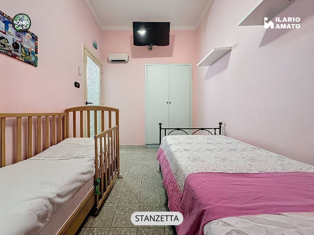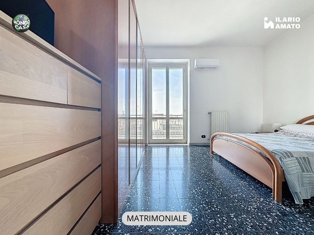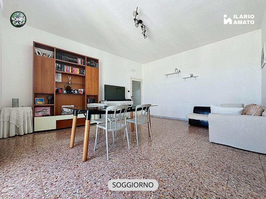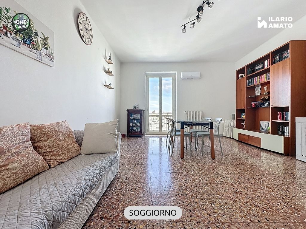 L’appartamento si trova al quarto e ultimo piano e gode di affacci panoramici sulla città, sul corso principale e di una piacevole vista mare laterale. Il pianerottolo, ampio e finestrato, contribuisce a rendere l’arrivo a casa luminoso e arioso.