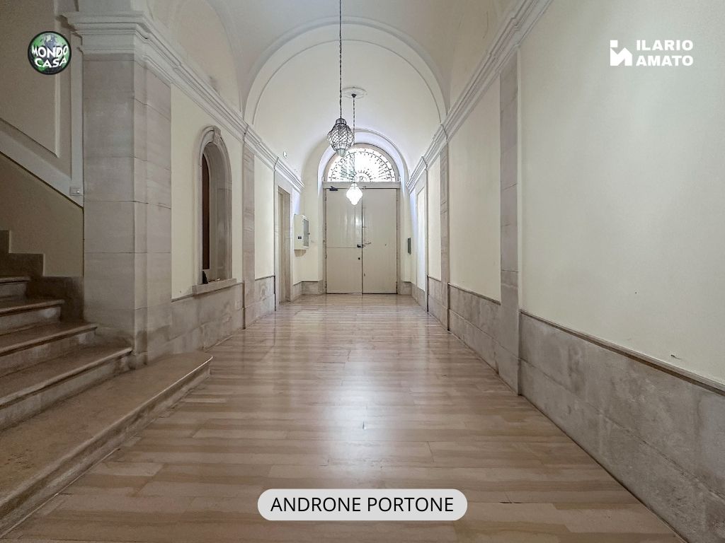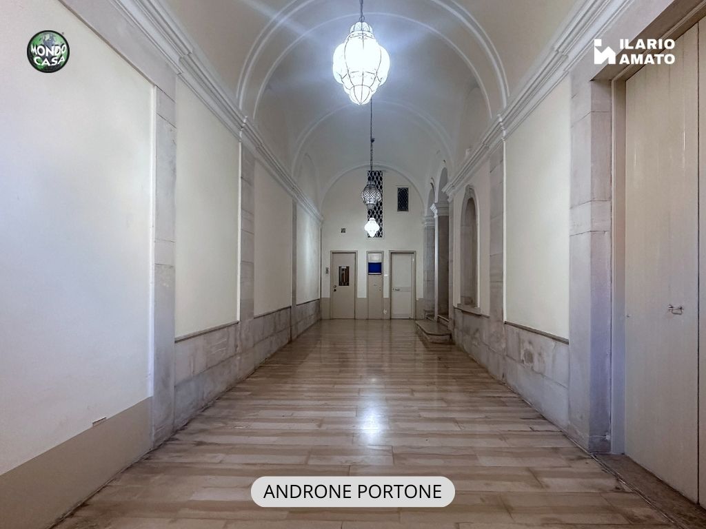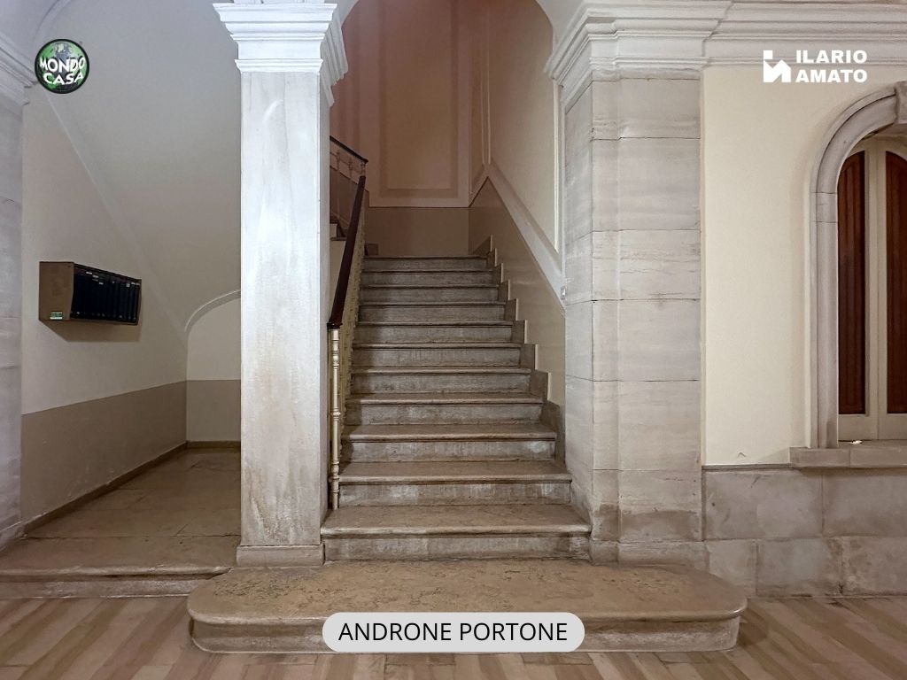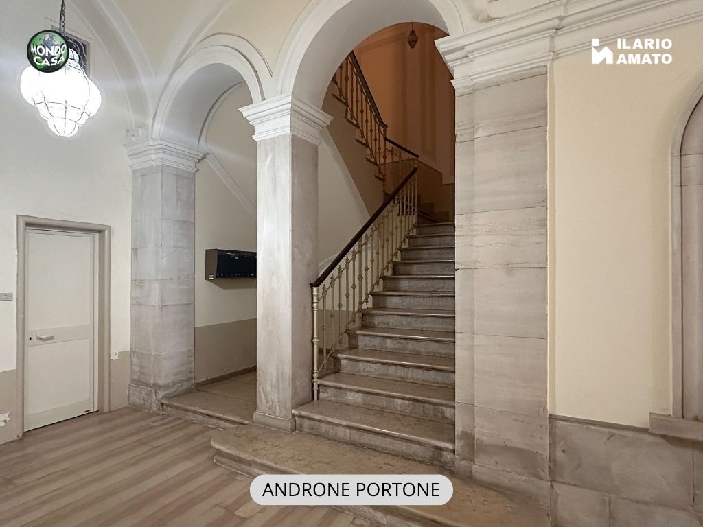 Il fabbricato, servito da ascensore, accoglie con un elegante androne d’ingresso impreziosito da colonne, scalinate in pietra e suggestivi soffitti con archi e volte a crociera, dettagli che trasmettono subito il carattere signorile dello stabile.