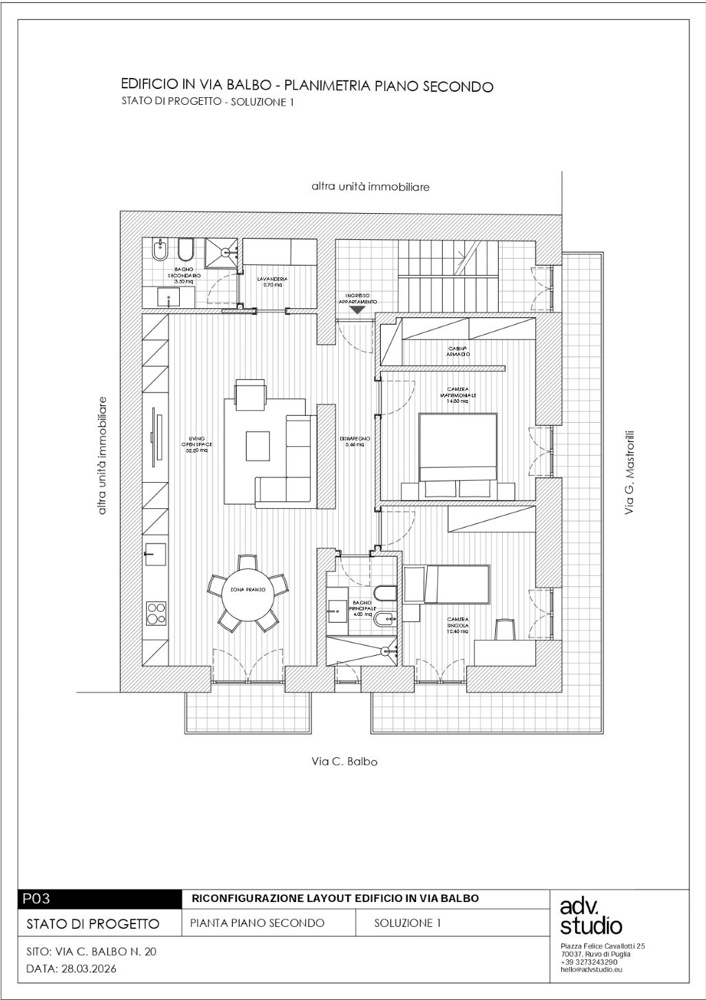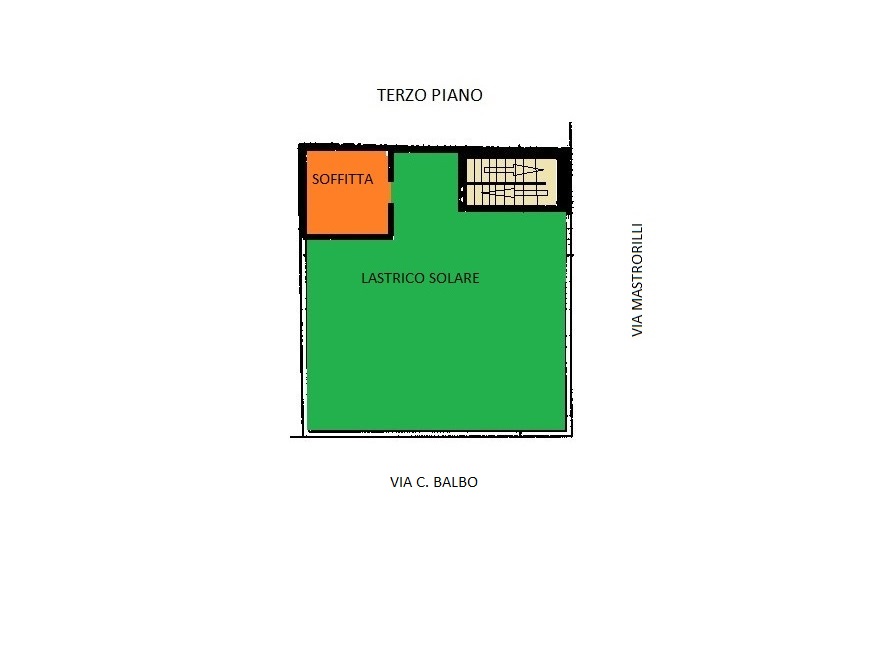 - terzo piano: che completa il tutto con una soffitta e il lastrico solare.