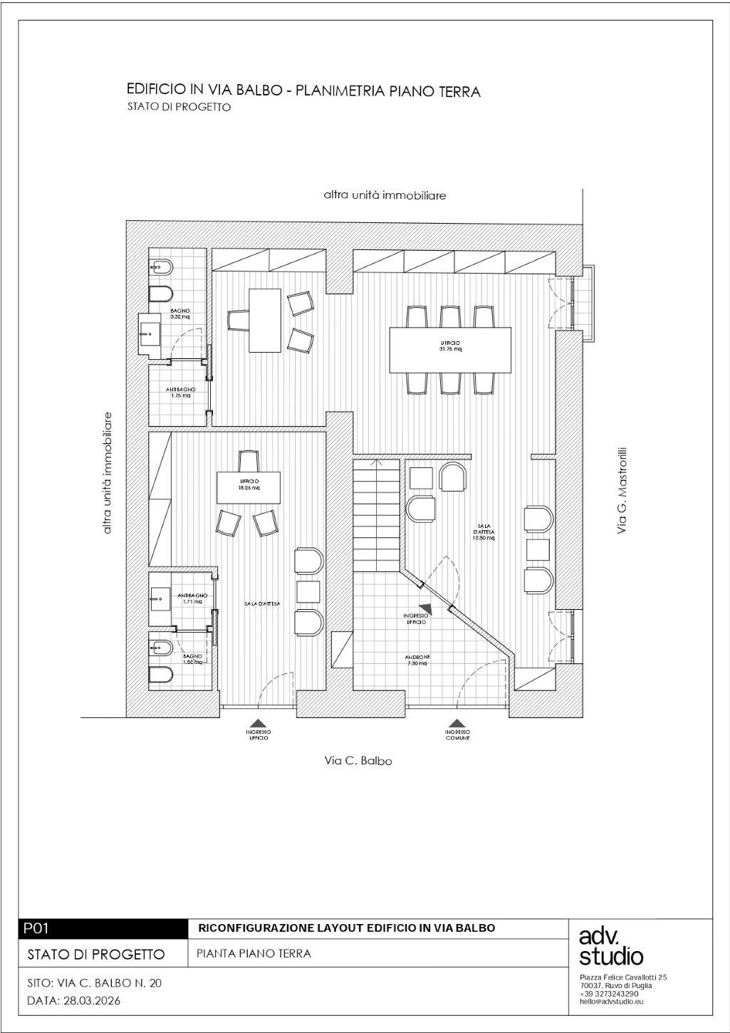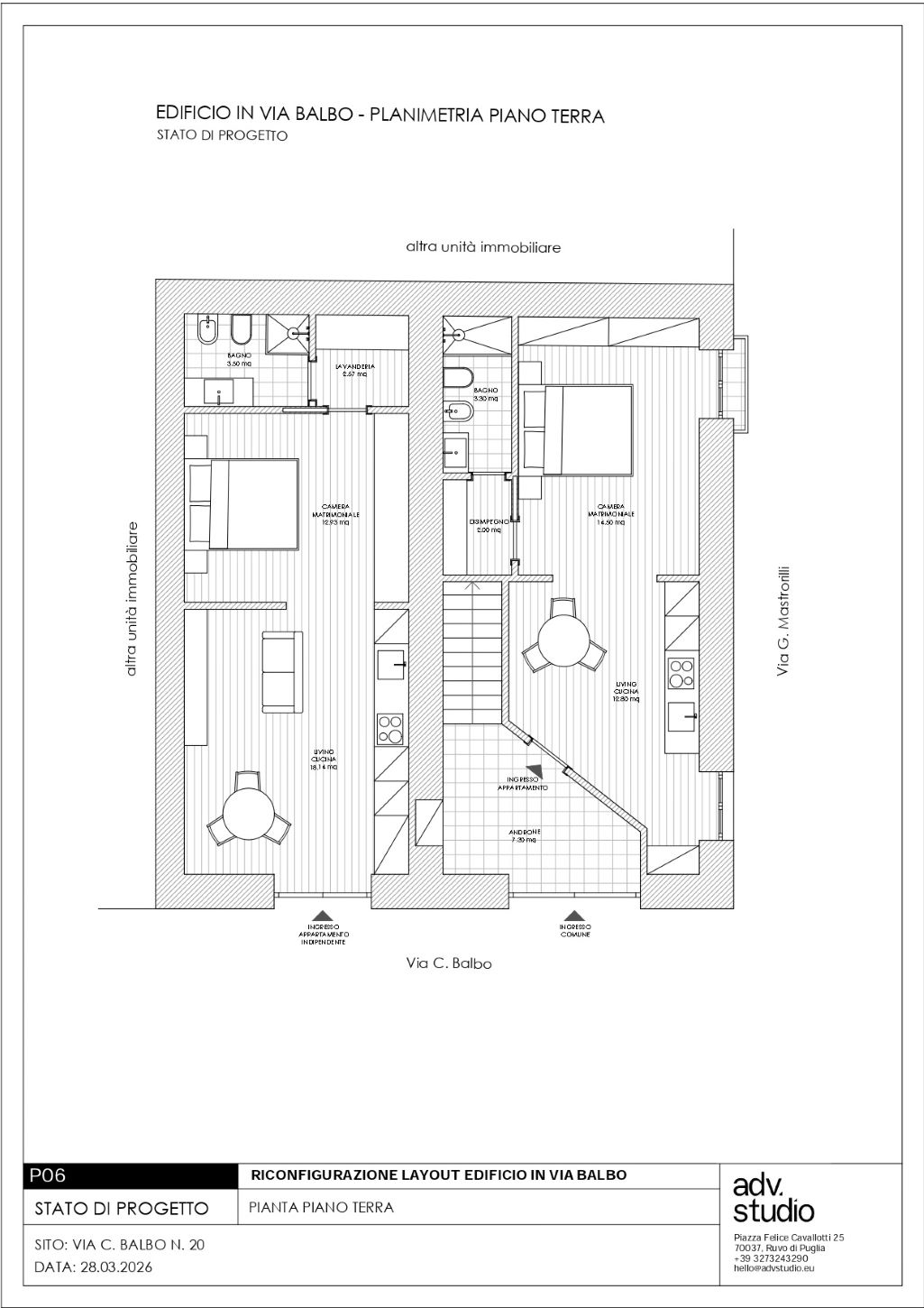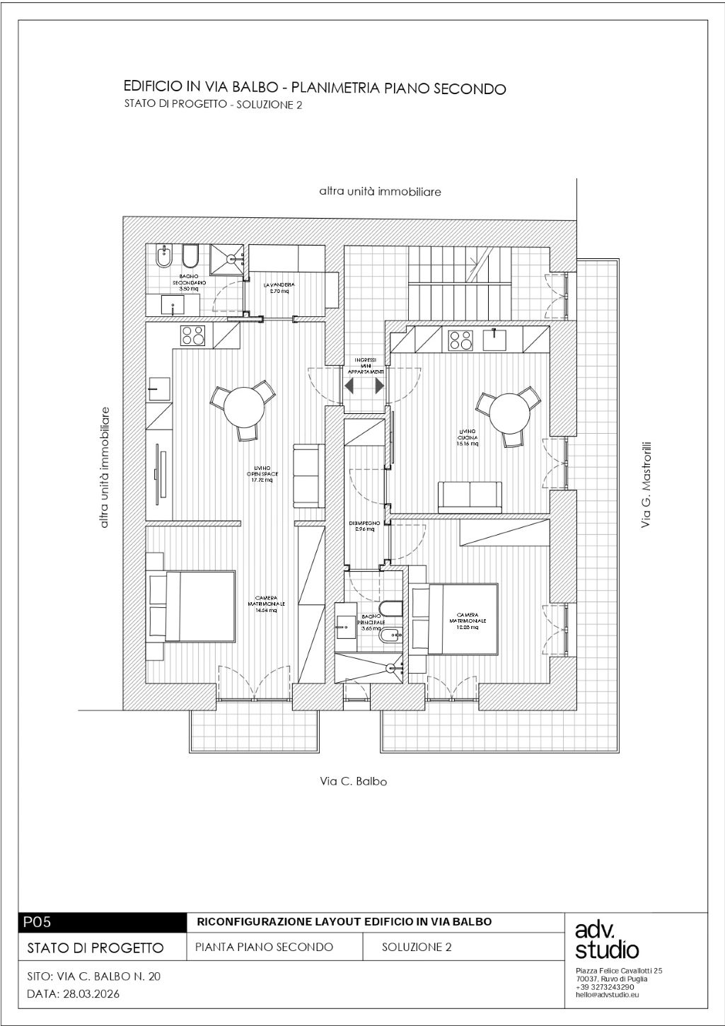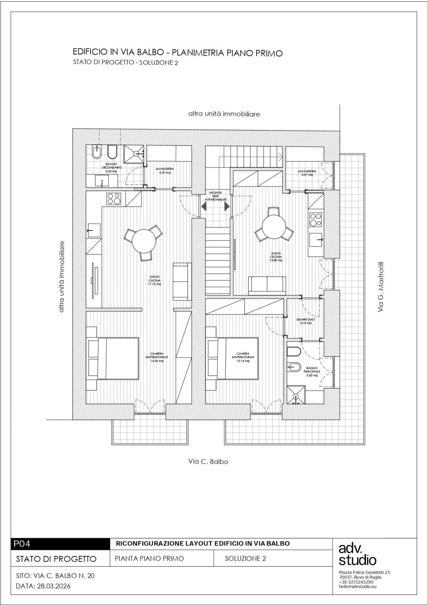 - Primo piano: che vede due bilocali sempre con servizi potenzialmente comunicanti;