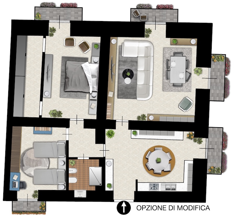 Per aiutarti a immaginare il suo potenziale abbiamo realizzato alcuni render con arredamenti moderni, visibili nella galleria fotografica.