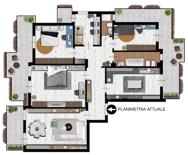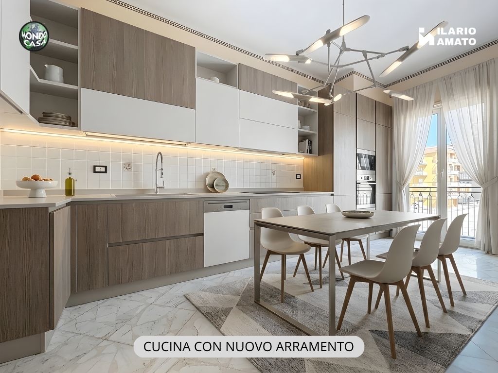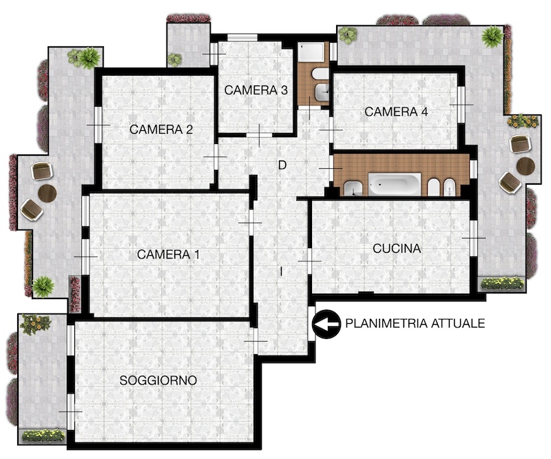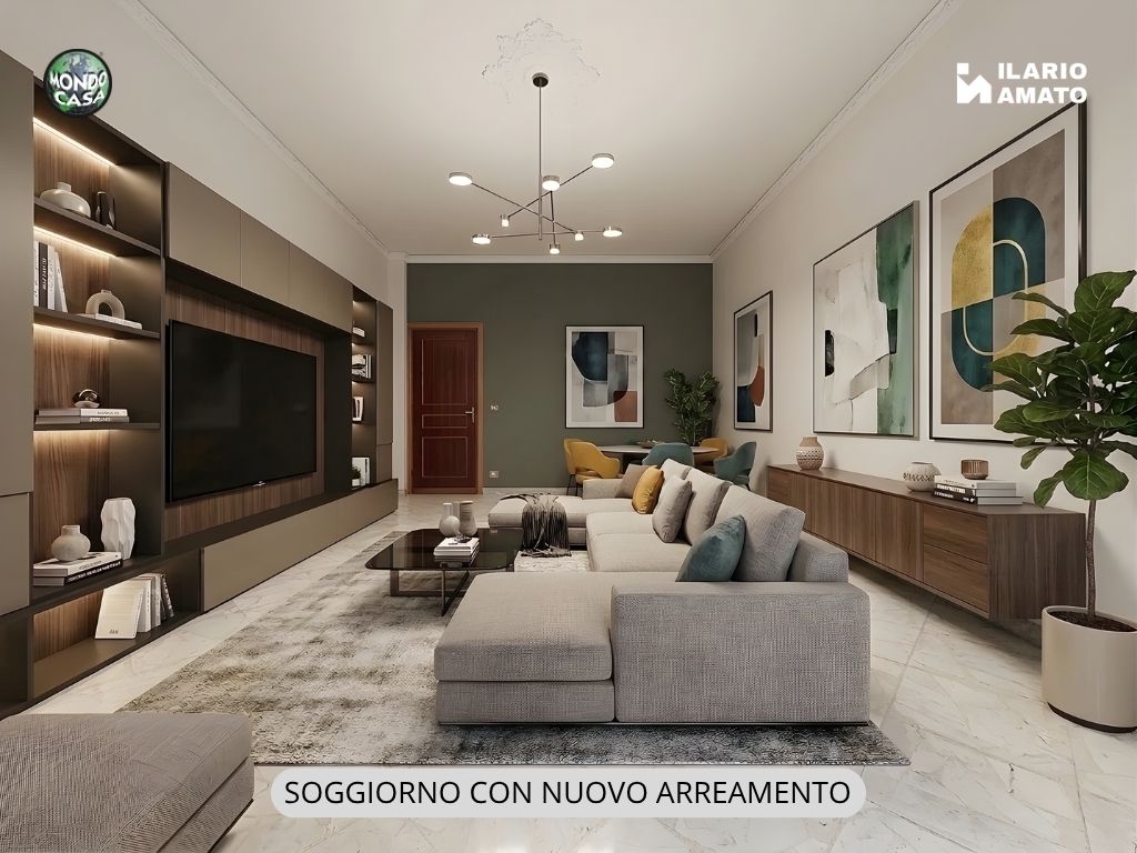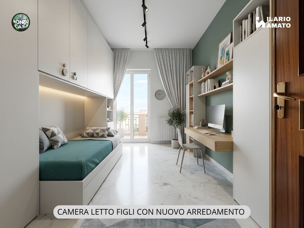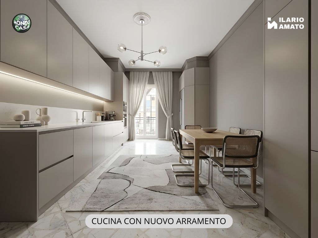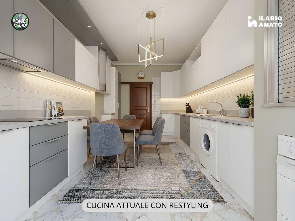 Per aiutarti a immaginare al meglio il suo potenziale, nella galleria fotografica troverai anche immagini con nuove soluzioni di arredo, studiate per valorizzare gli spazi senza modificare nè la distribuzione nè il pavimento originale, che resta uno dei punti di forza della casa.