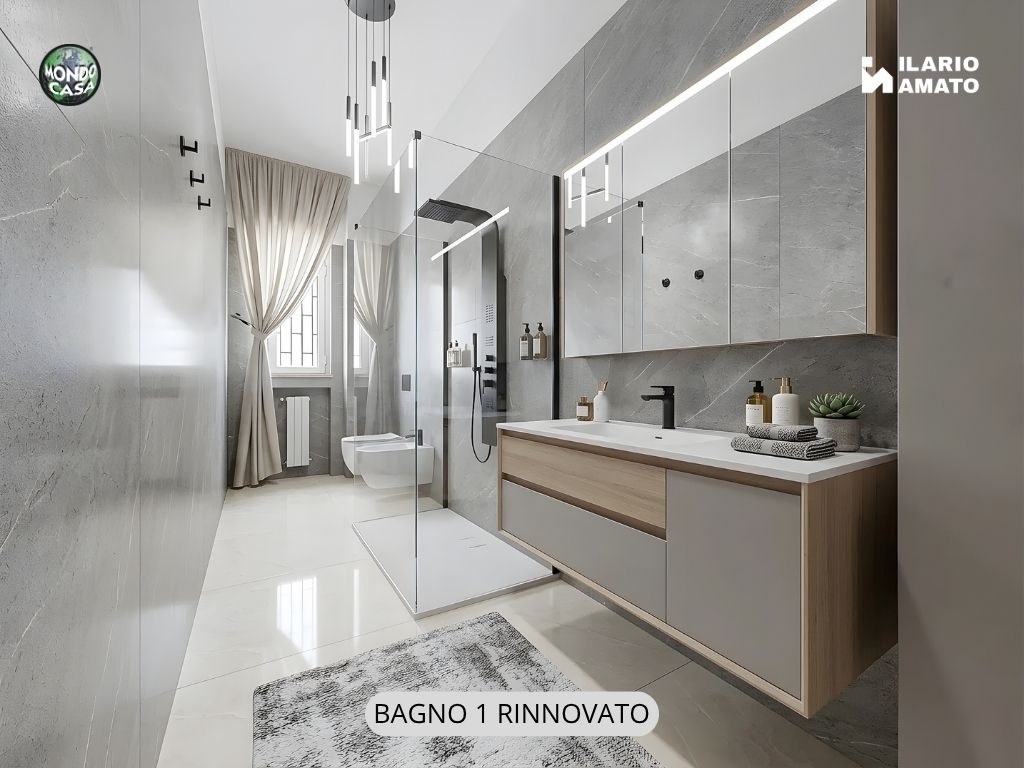 L’appartamento si presenta in buone condizioni interne, è termoautonomo ed è impreziosito da una raffinata pavimentazione in graniglia di marmo bianco, elegante e senza tempo.