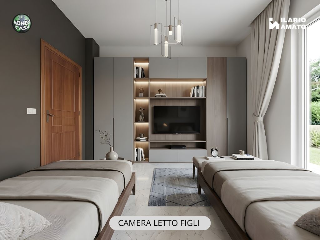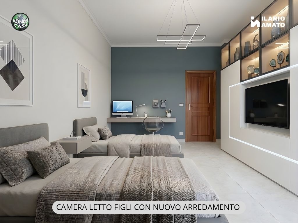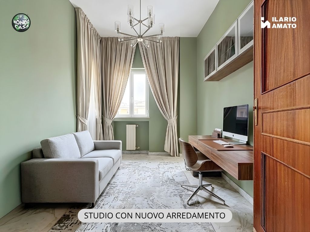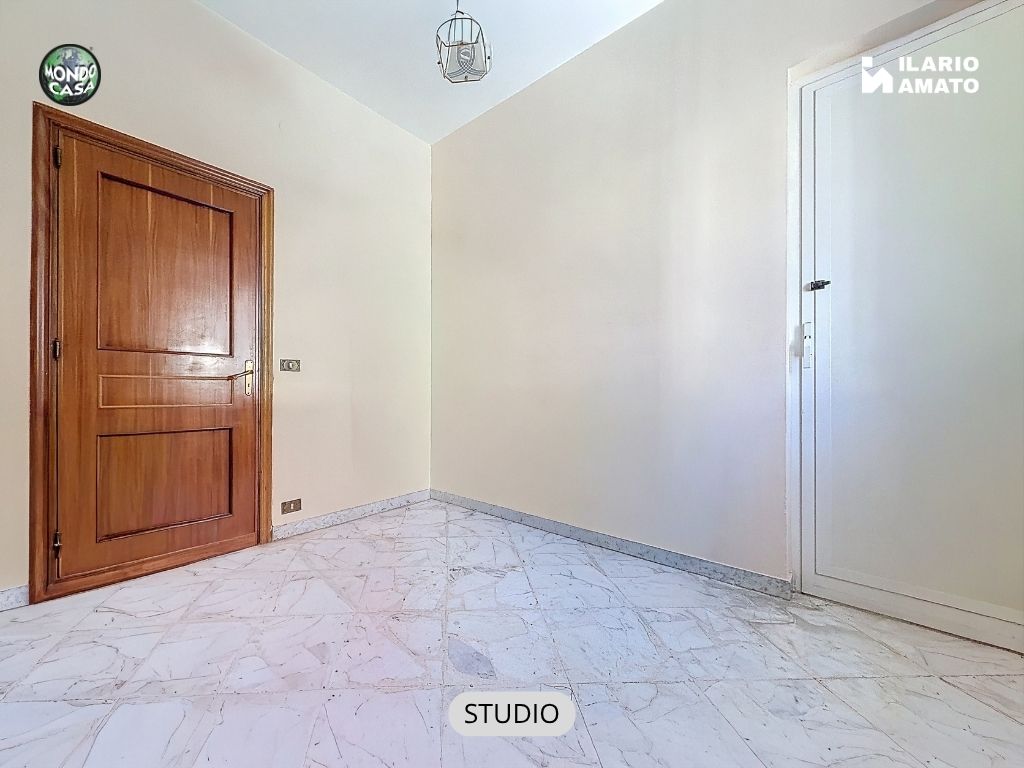 L’ingresso conduce alla zona giorno, composta da cucina abitabile e salone spazioso, separata in modo funzionale dalla zona notte, dove troviamo tre comode camere da letto, studio, e due bagni finestrati.