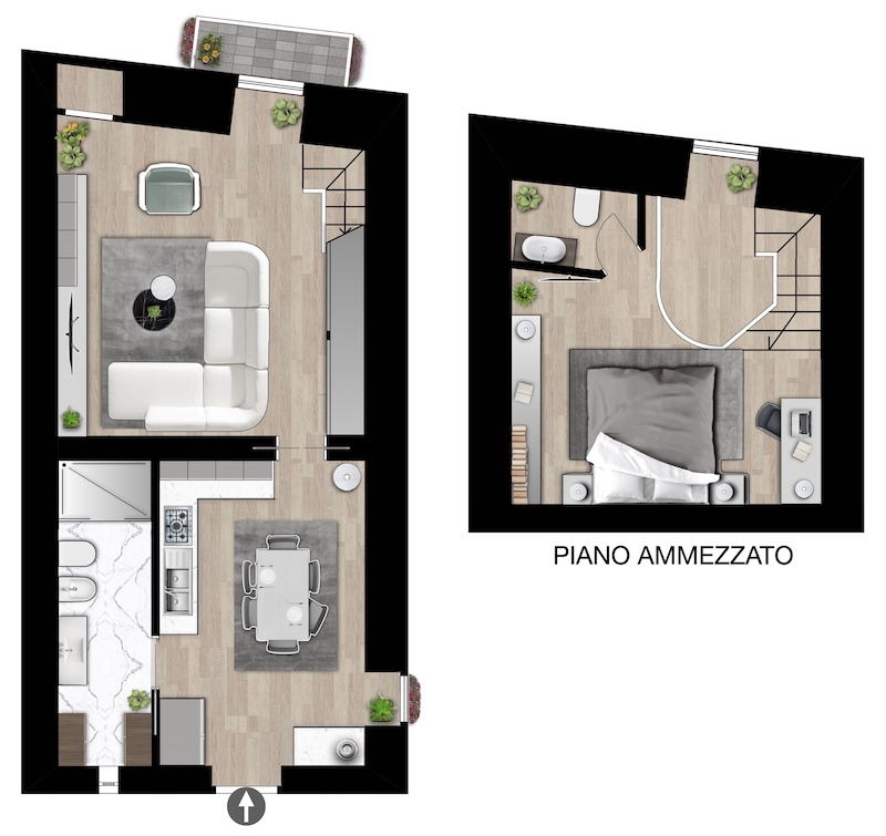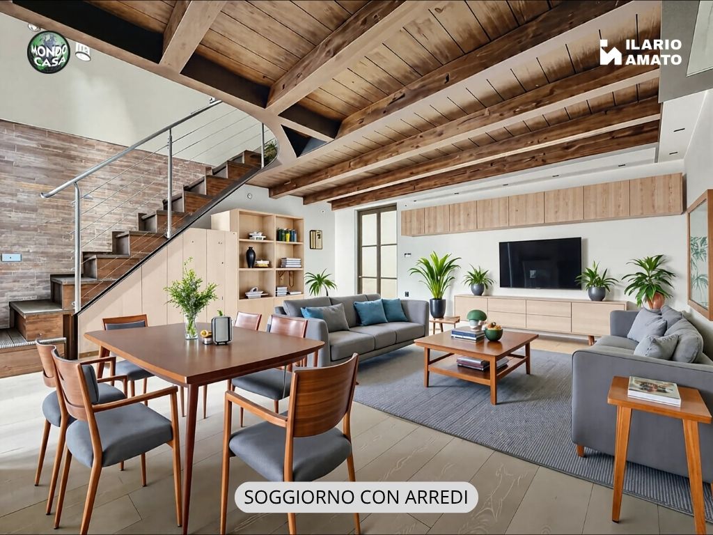 Le foto rappresentano l’immobile esattamente com’è oggi, ma per aiutarti a immaginarne al meglio il potenziale abbiamo realizzato anche render suggestivi con soluzioni di arredo e layout.