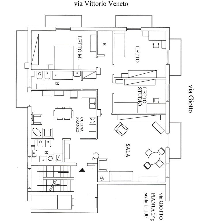 Vendesi nuda proprietà di centralissimo appartamento al secondo piano composto da salone, cucina abitabile, 2 camere da letto, studio, ripostiglio, 4 balconi, tre affacci. Suppenna al 5° piano.