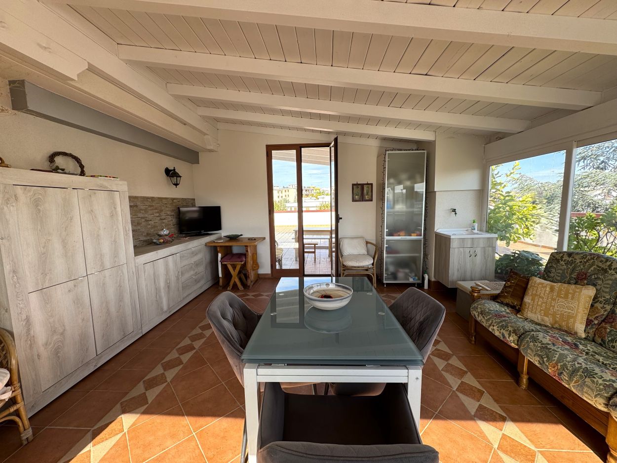 La zona giorno si apre con un ingresso riservato, a seguire un soggiorno accogliente e luminoso, ideale per godersi momenti di tranquillità o per accogliere gli ospiti. Continuando, una pratica cucina con adiacente area pranzo, ben organizzata e piena di luce naturale: l’ambiente perfetto per la vita quotidiana.