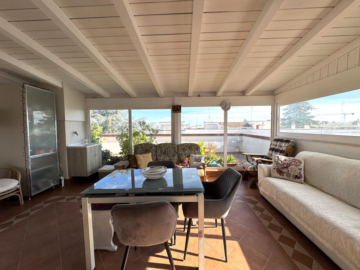 Il vero gioiello della casa è il terrazzo di 150 mq, un’oasi privata con vista aperta sul verde del parco: un luogo unico dove vivere all’aperto, cenare con gli amici, giocare con i bambini o semplicemente godersi il silenzio della natura pur restando in città.