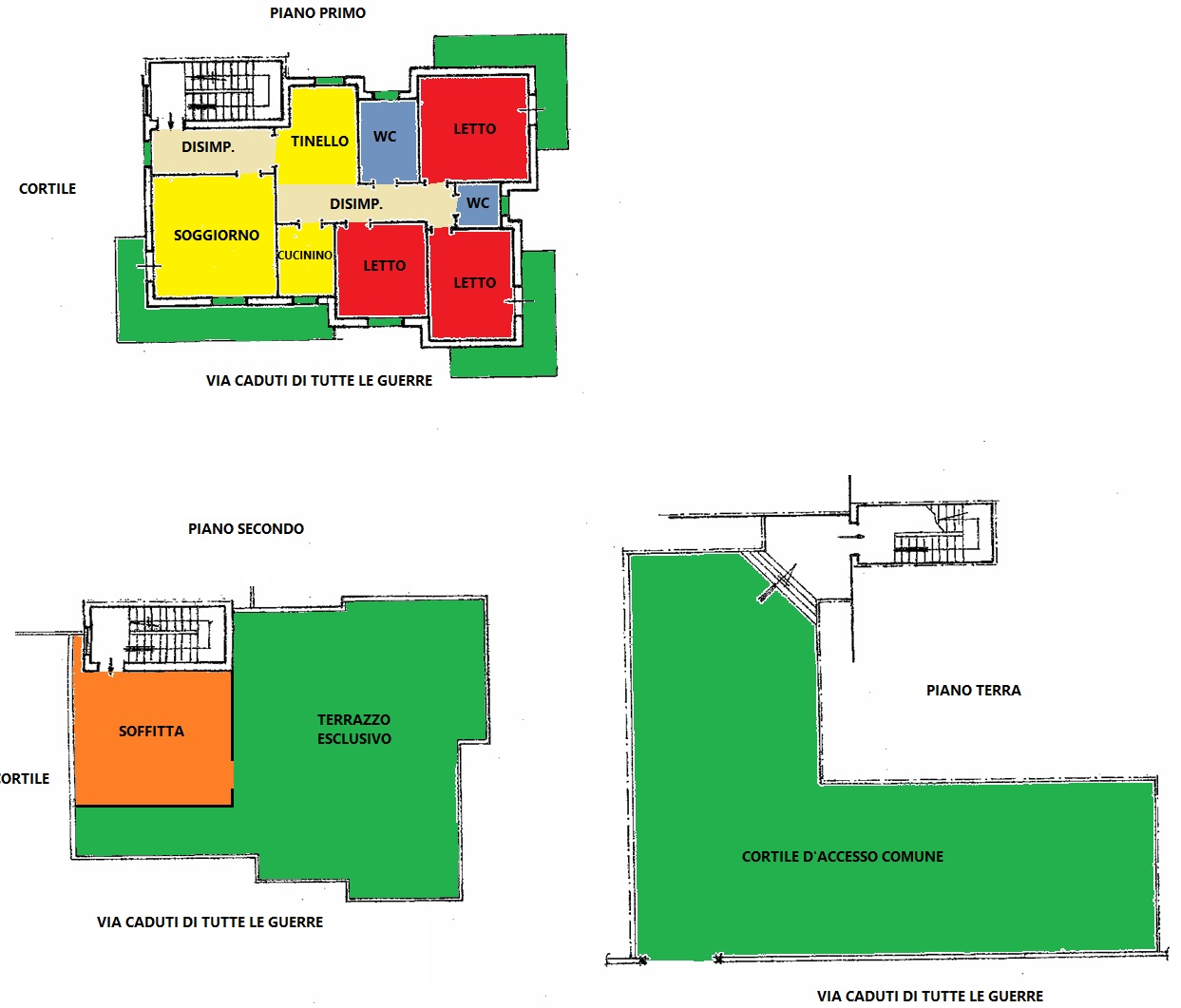 La zona notte offre tre camere da letto, ampie e silenziose, oltre a due bagni comodi e ben distribuiti.