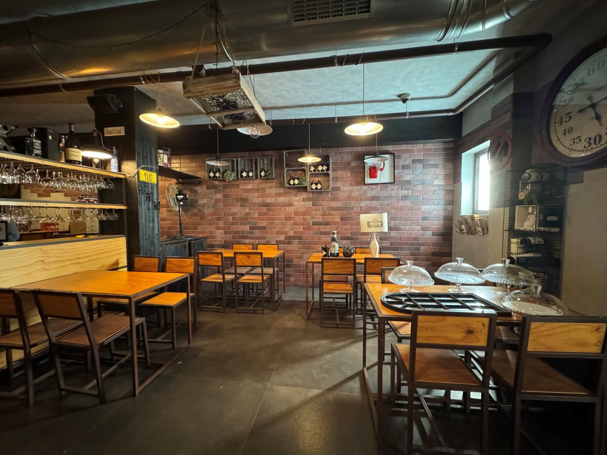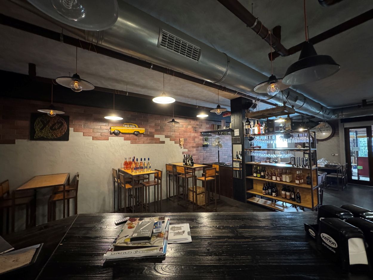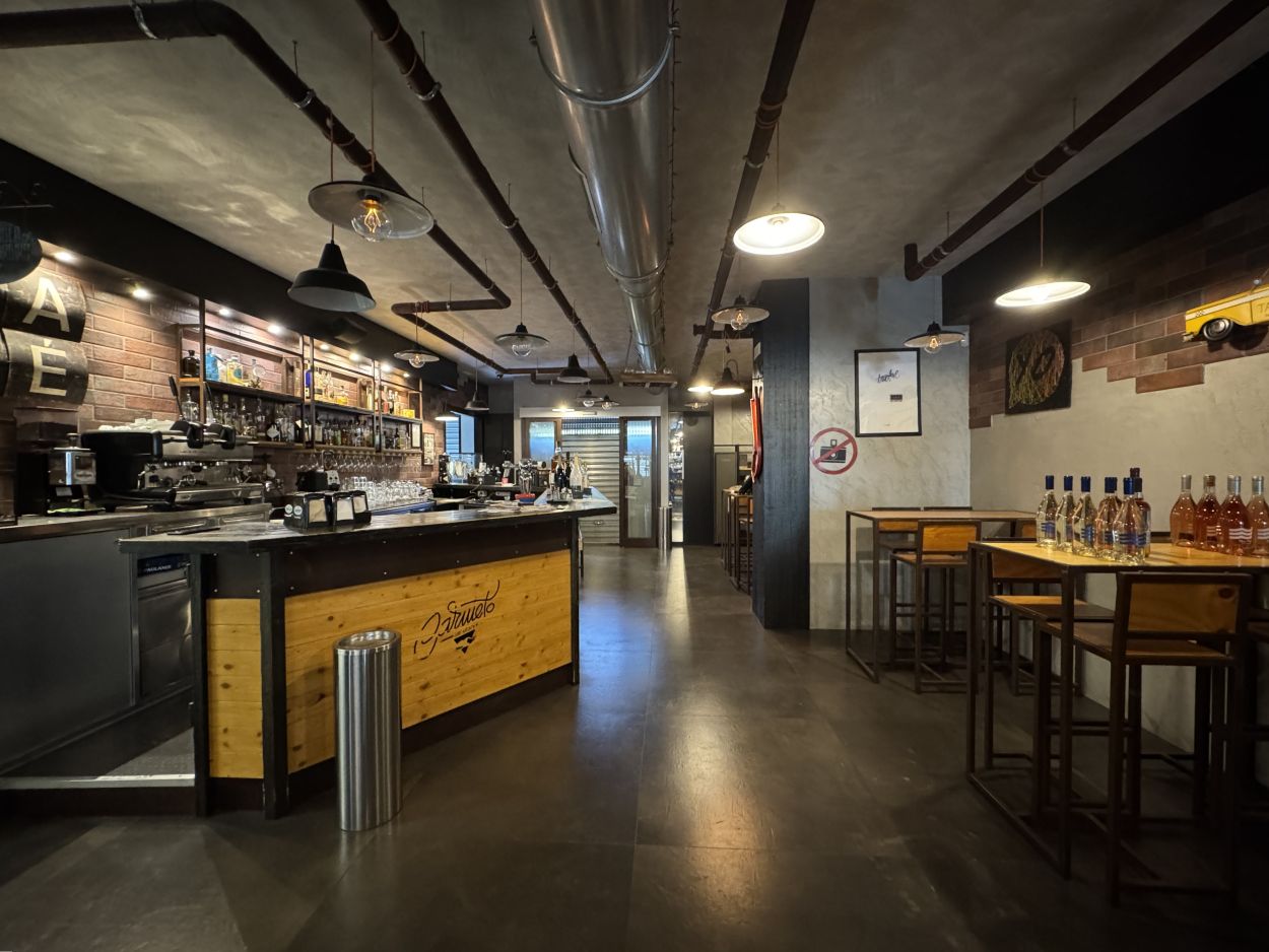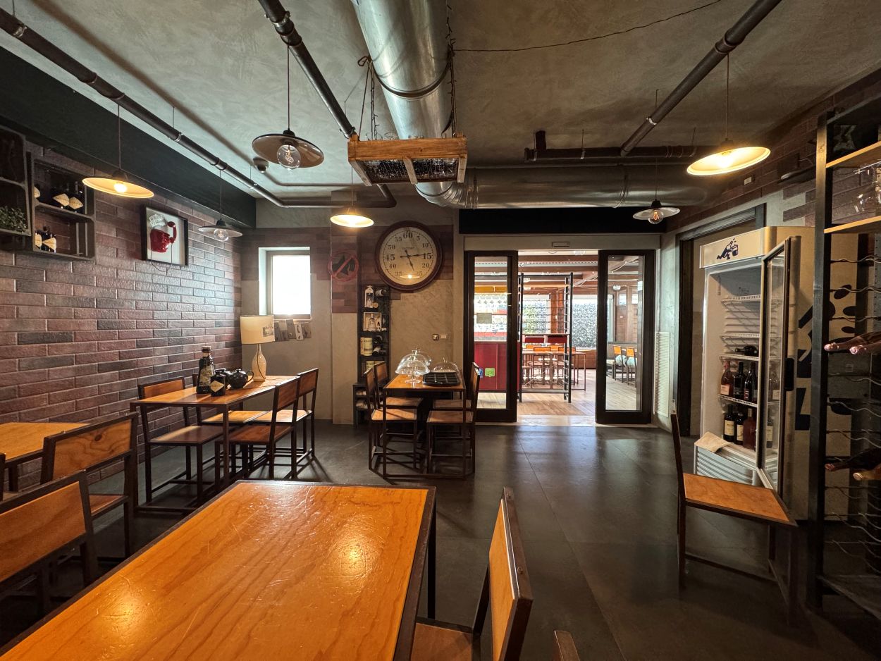 Il ristorante dispone di una grande sala interna, capace di accogliere numerosi tavoli senza rinunciare alla comodità e all’eleganza degli spazi. Un lungo bancone accoglie gli ospiti all’ingresso e si presta perfettamente a servizio bar e cassa.