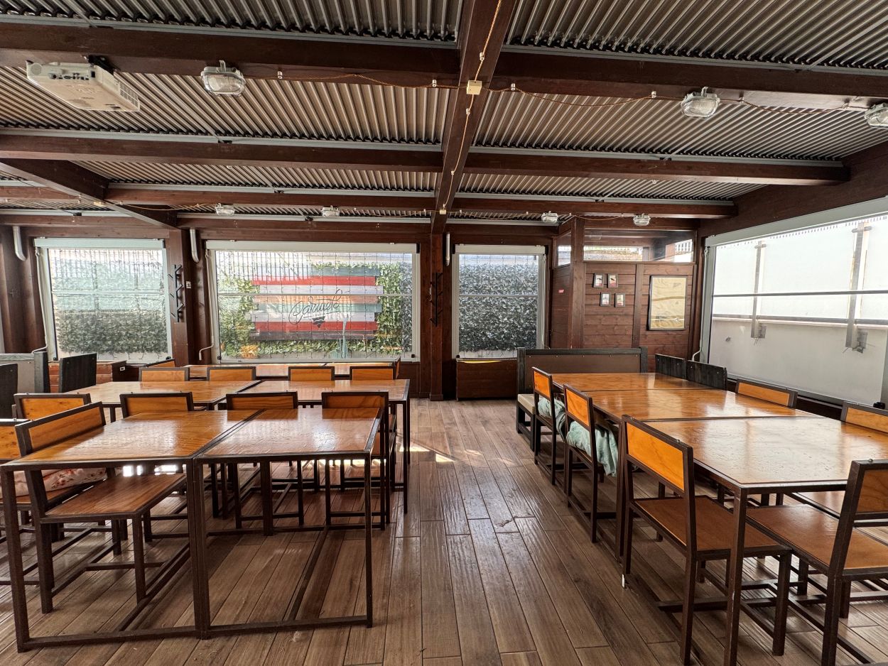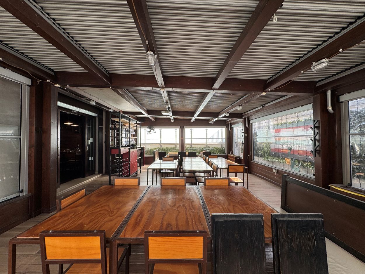 All’esterno, un ampio cortile con tettoia coibentata offre ulteriori posti a sedere, permettendo di sfruttare lo spazio in ogni stagione e creando un’atmosfera piacevole e versatile.