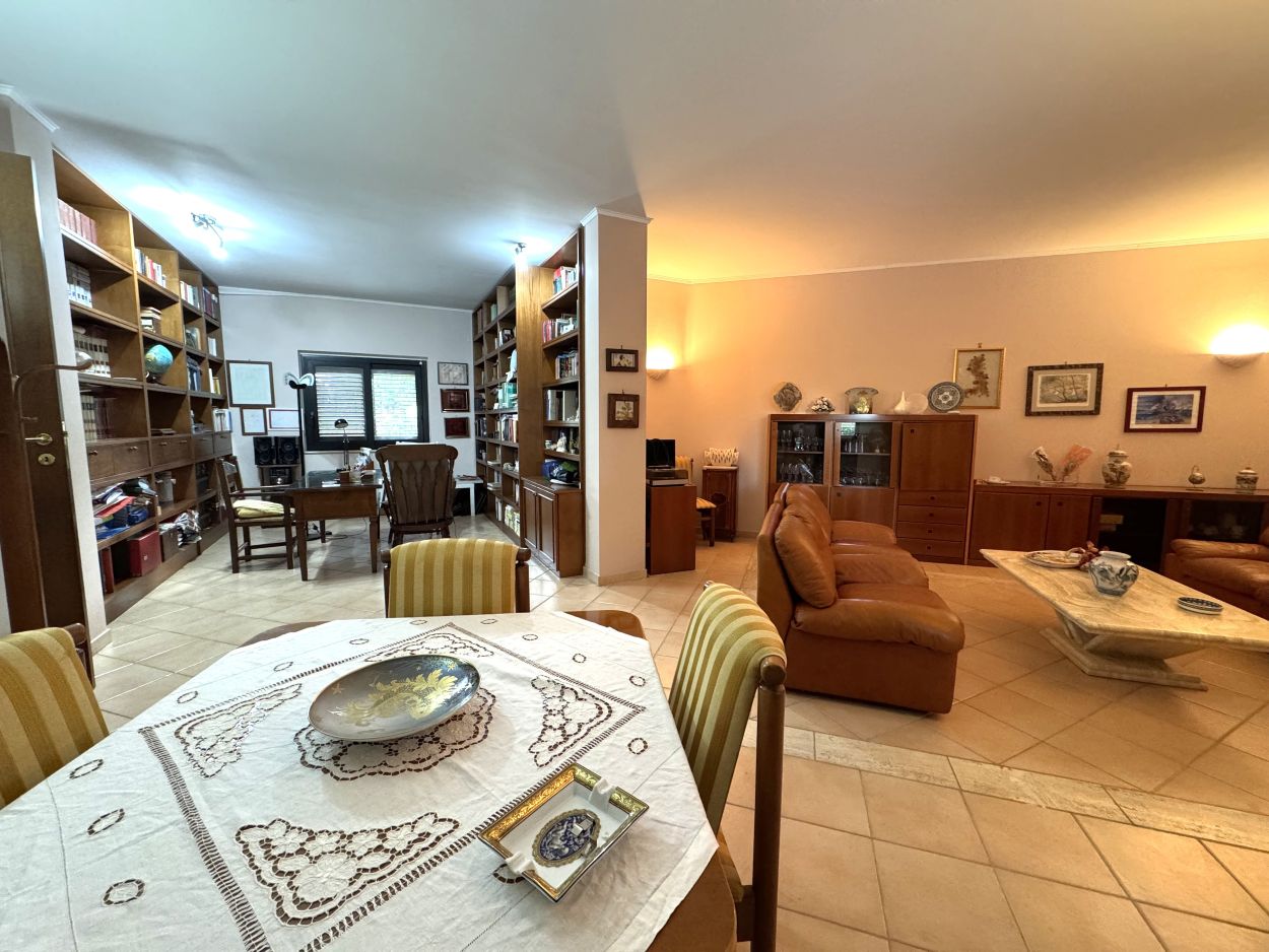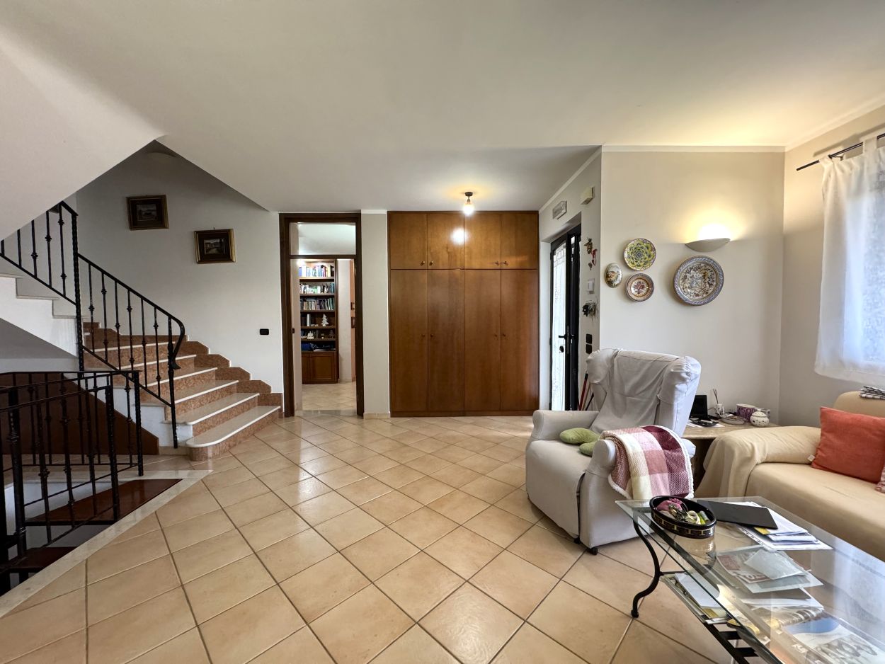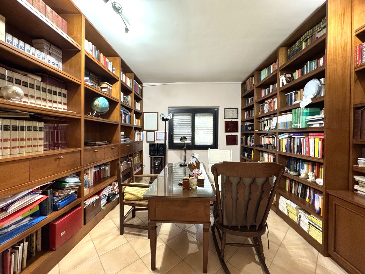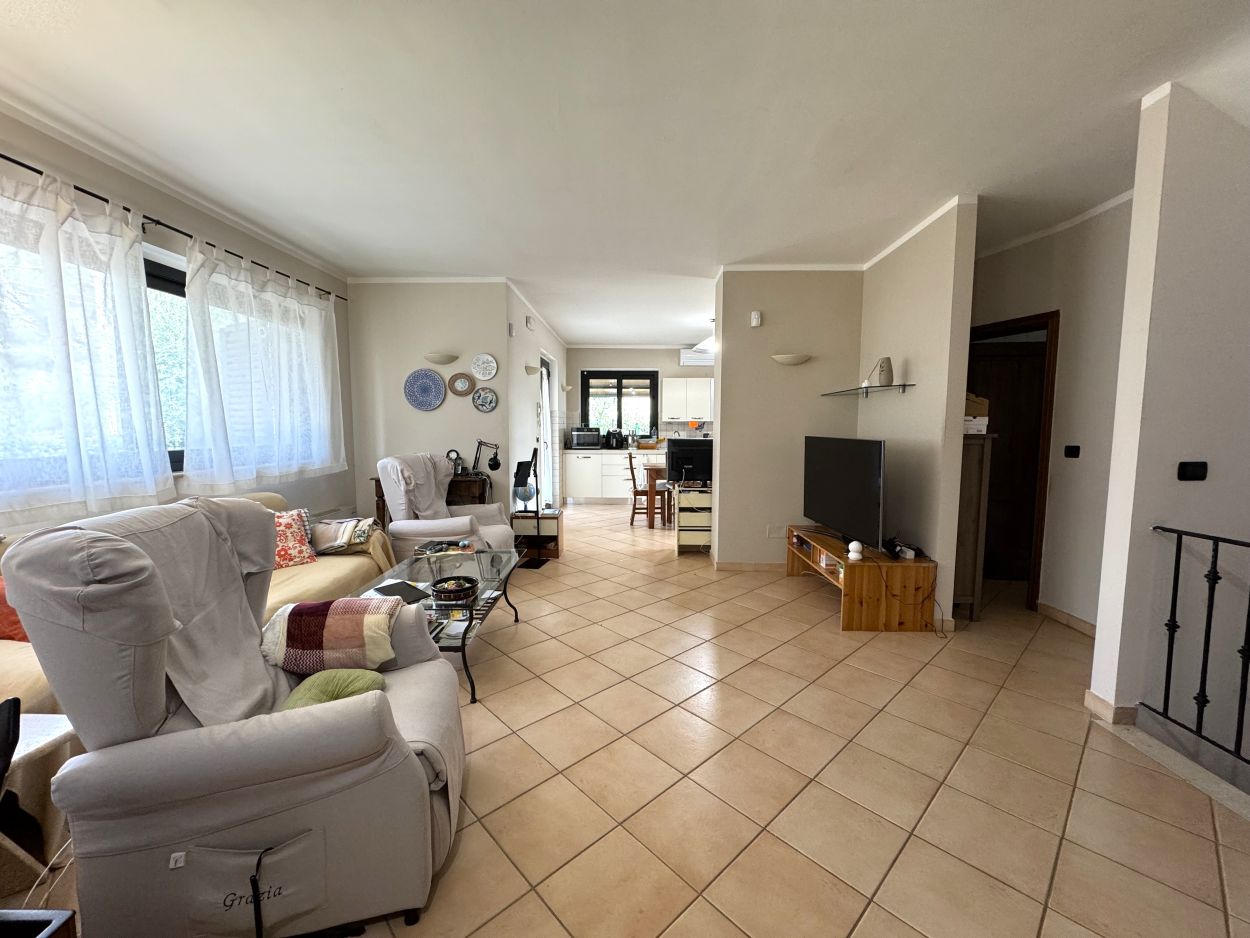Entrando, la sensazione è quella di una casa vissuta con cura e progettata per garantire comfort e funzionalità. Il piano terra accoglie una zona giorno ampia e armoniosa, dove ogni ambiente è luminoso e ben distribuito: un soggiorno ideale per ricevere ospiti, una cucina abitabile perfetta per la vita quotidiana, uno studio riservato, un salotto accogliente e un bagno pratico e ben rifinito.