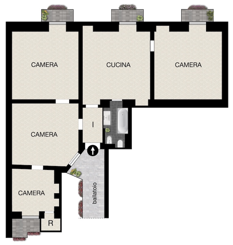 La luminosità è uno dei suoi punti di forza: ogni ambiente ha il suo balcone (ben quattro!), dettaglio sempre più raro nelle case antiche del centro.