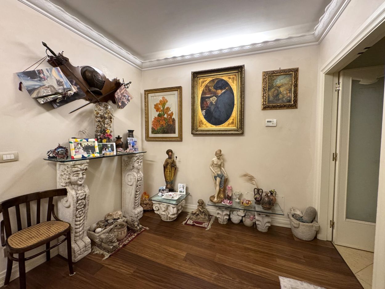 La casa ci accoglie con un ampio ingresso doppio che separa la zona giorno, composta da ampia cucina abitabile un salone e un bagno, e la zona notte, composta da 2 comode camere da letto un bagno principale e un ulteriore camera da adibire ad ufficio zona hobby o volendo ad una terza camera da letto. Tutti gli ambienti hanno un ampio balcone e grazie alla doppia esposizione della casa tutti sono luminosi e arieggiati.