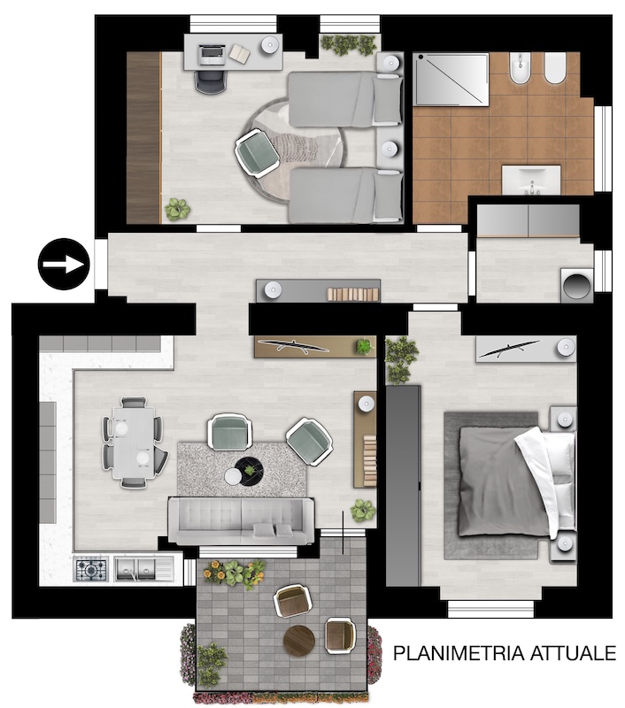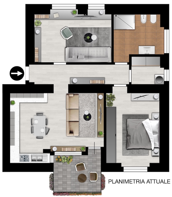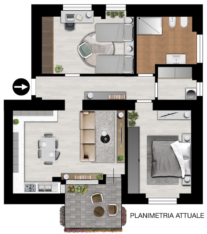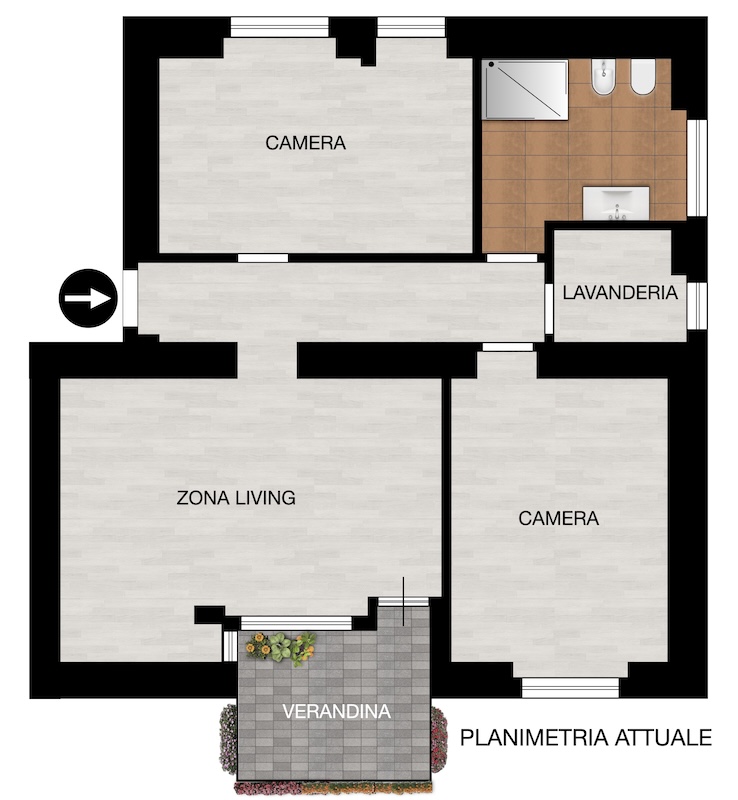 • terrazzo ristrutturato nel 2025,