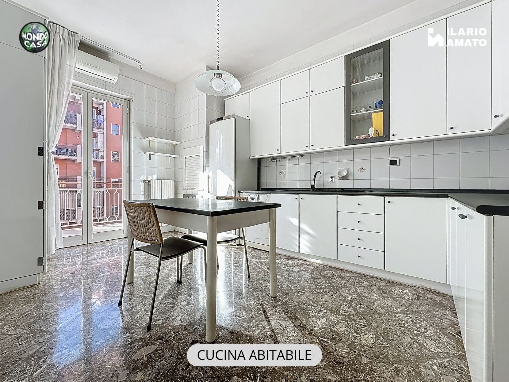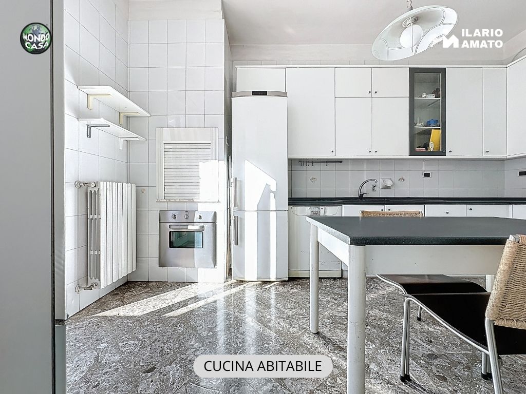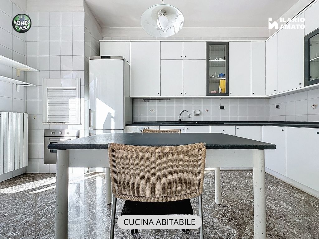 L’appartamento si presenta in buone condizioni interne, è termoautonomo ed è impreziosito da una raffinata pavimentazione in graniglia di marmo dalle tonalità grigio chiaro, elegante e senza tempo.
