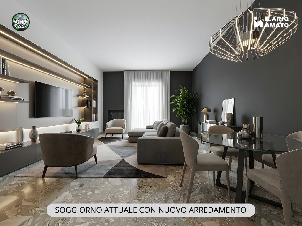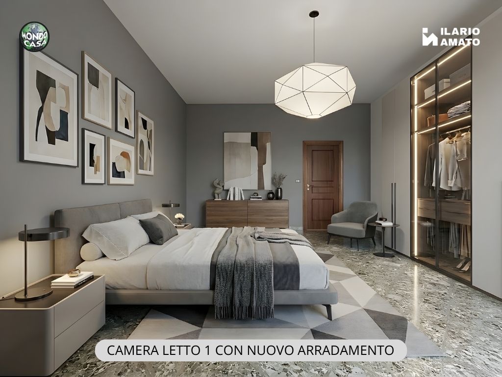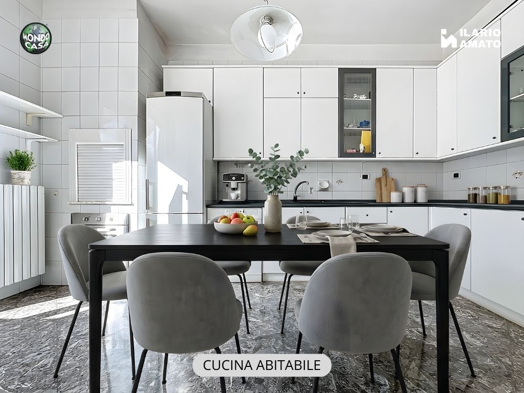 Per aiutarti a immaginare al meglio il suo potenziale, nella galleria fotografica troverai anche immagini con nuove soluzioni di arredo, studiate per valorizzare gli spazi senza modificare nè la distribuzione nè il pavimento originale, che resta uno dei punti di forza della casa.