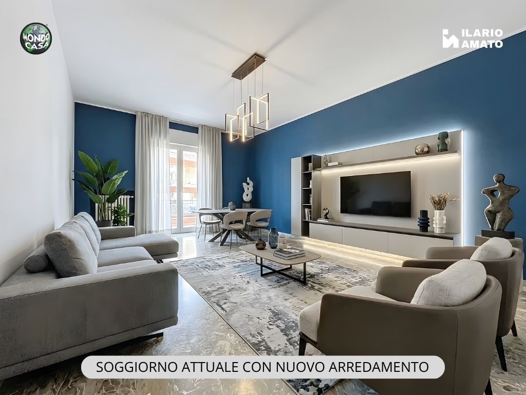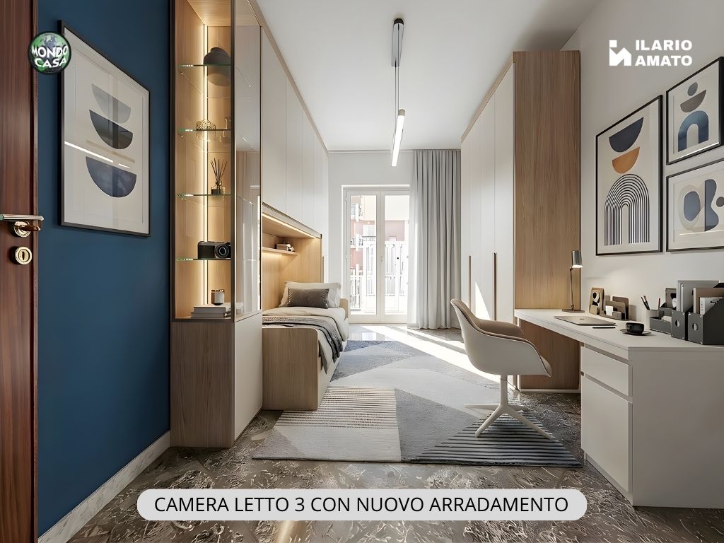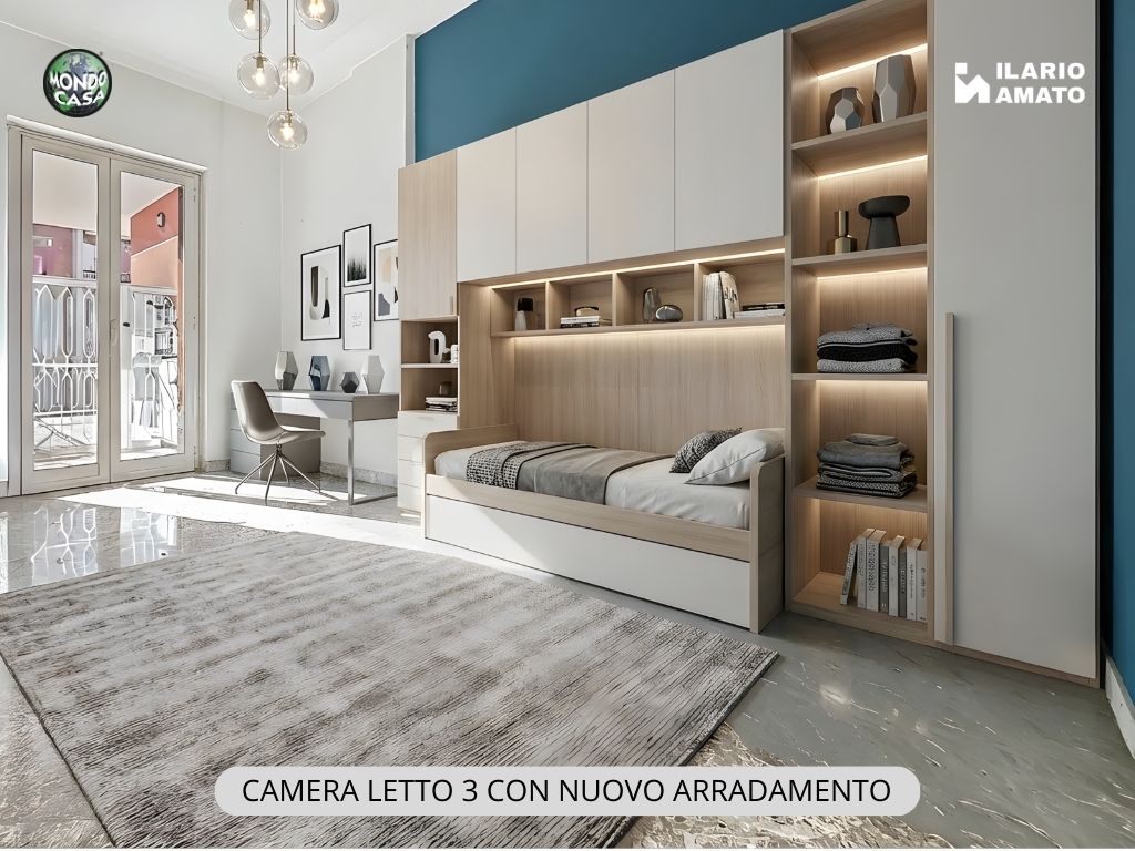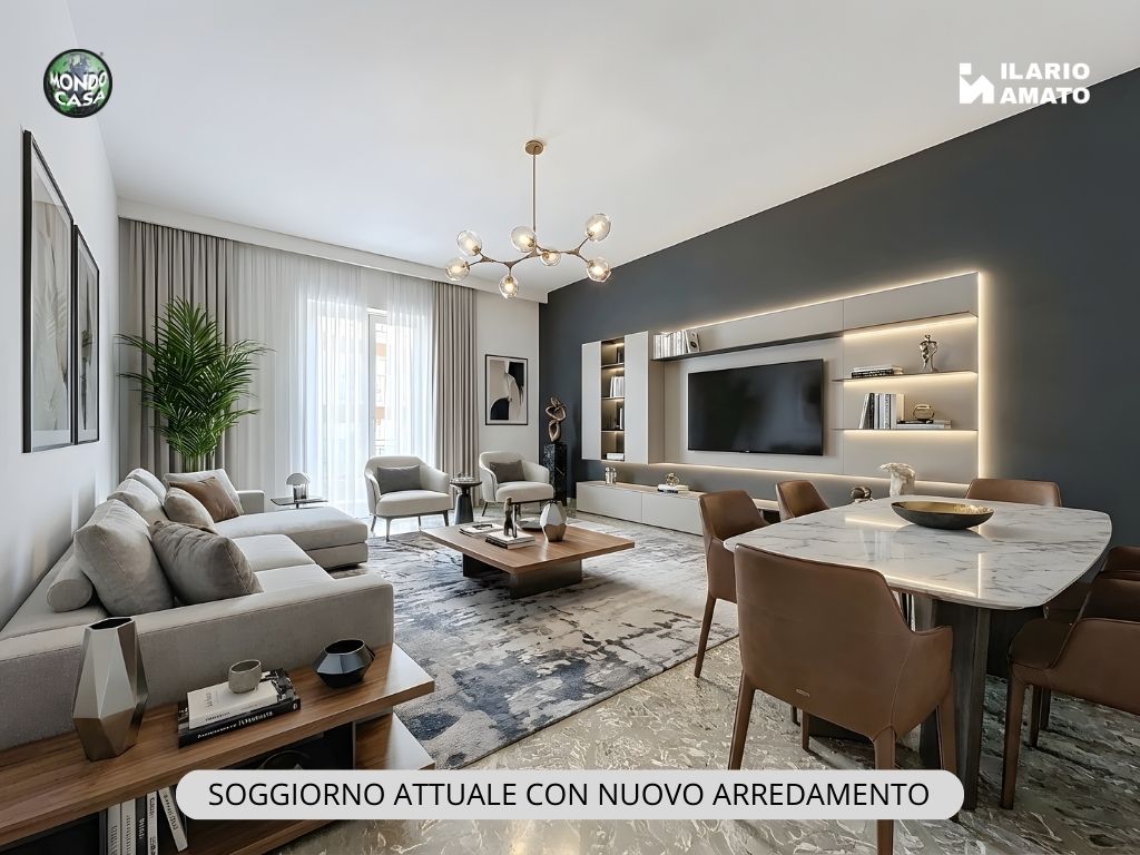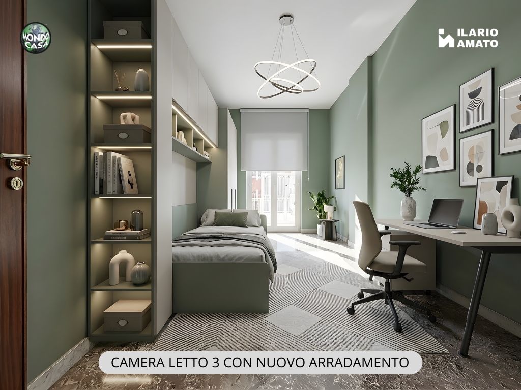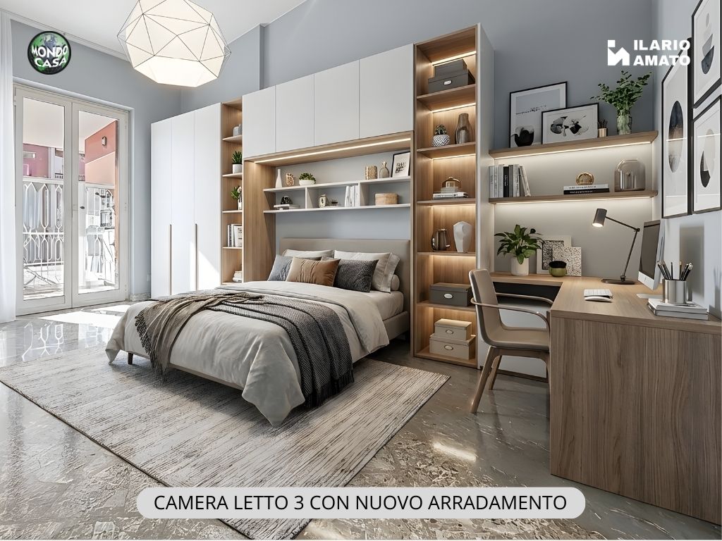 La distribuzione attuale è già funzionale e pronta da abitare; tuttavia, per chi desidera rinnovare, è disponibile una proposta progettuale alternativa con ampia zona living open space con cucina a vista e soggiorno, tre camere matrimoniali, doppi servizi (uno in camera) e ripostiglio, realizzabile con interventi leggeri.